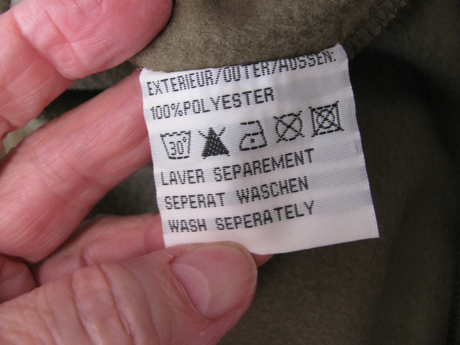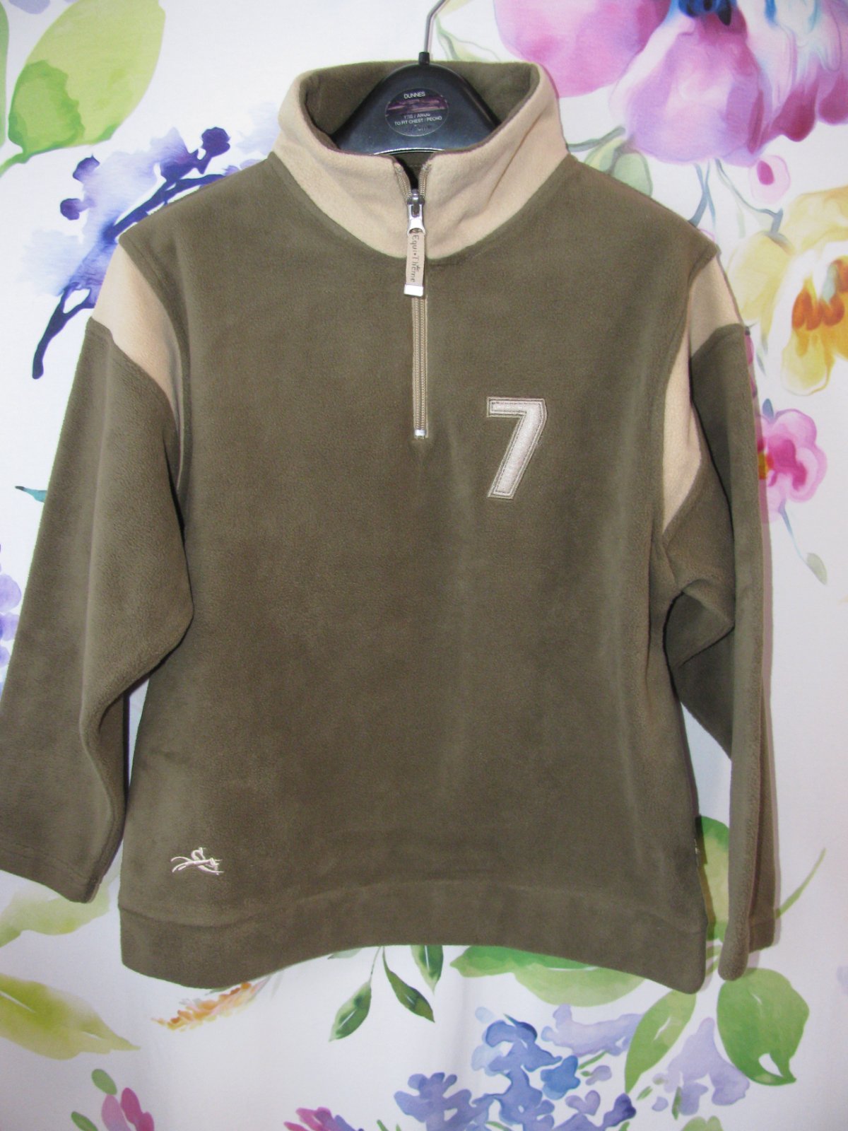 Krásná, měkká, pohodlná mikina, pod krkem krátký zip, barva khaki s béžovou, 100% polyester.