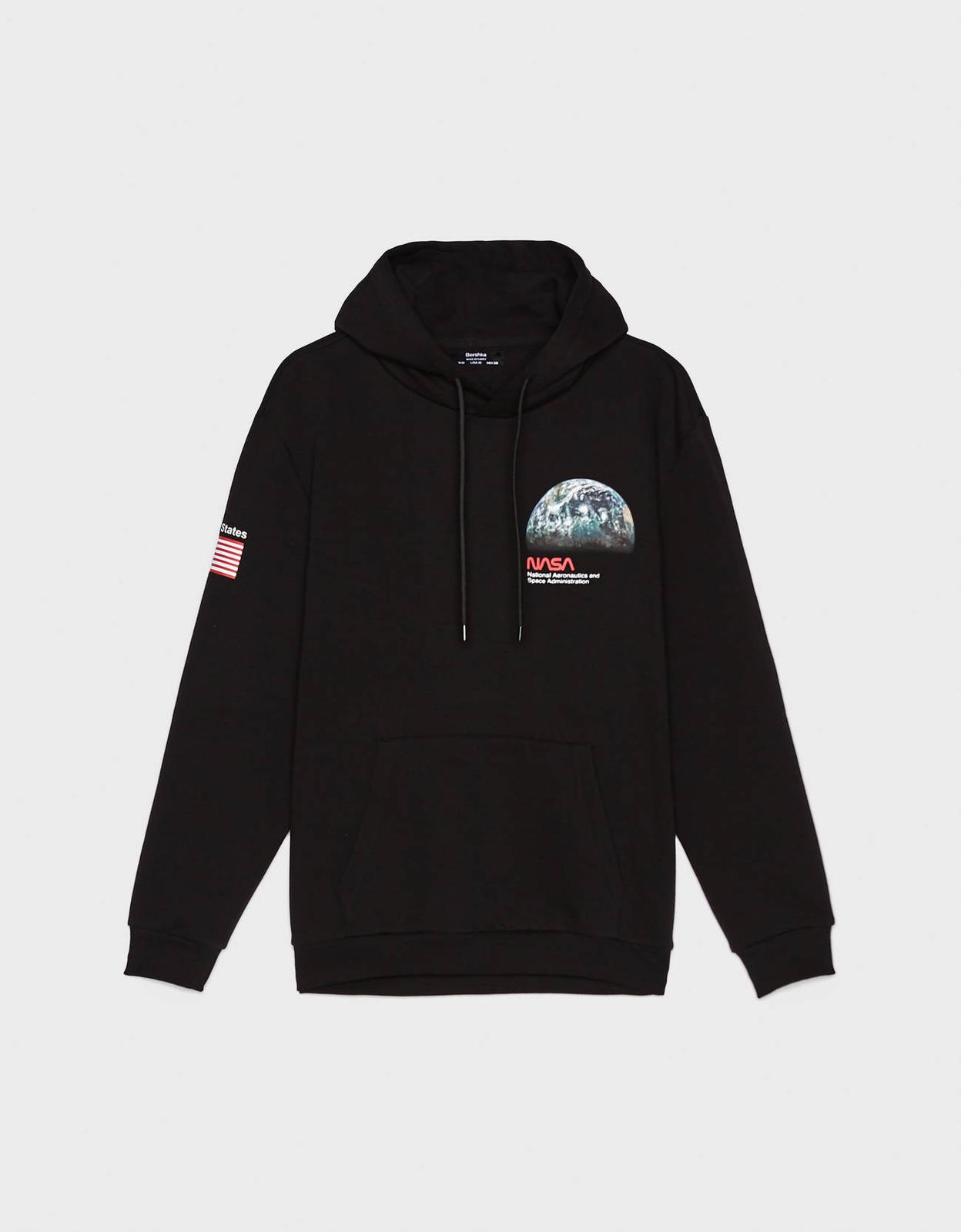 Moderní černá mikina BERSHKA s potiskem NASA :-)