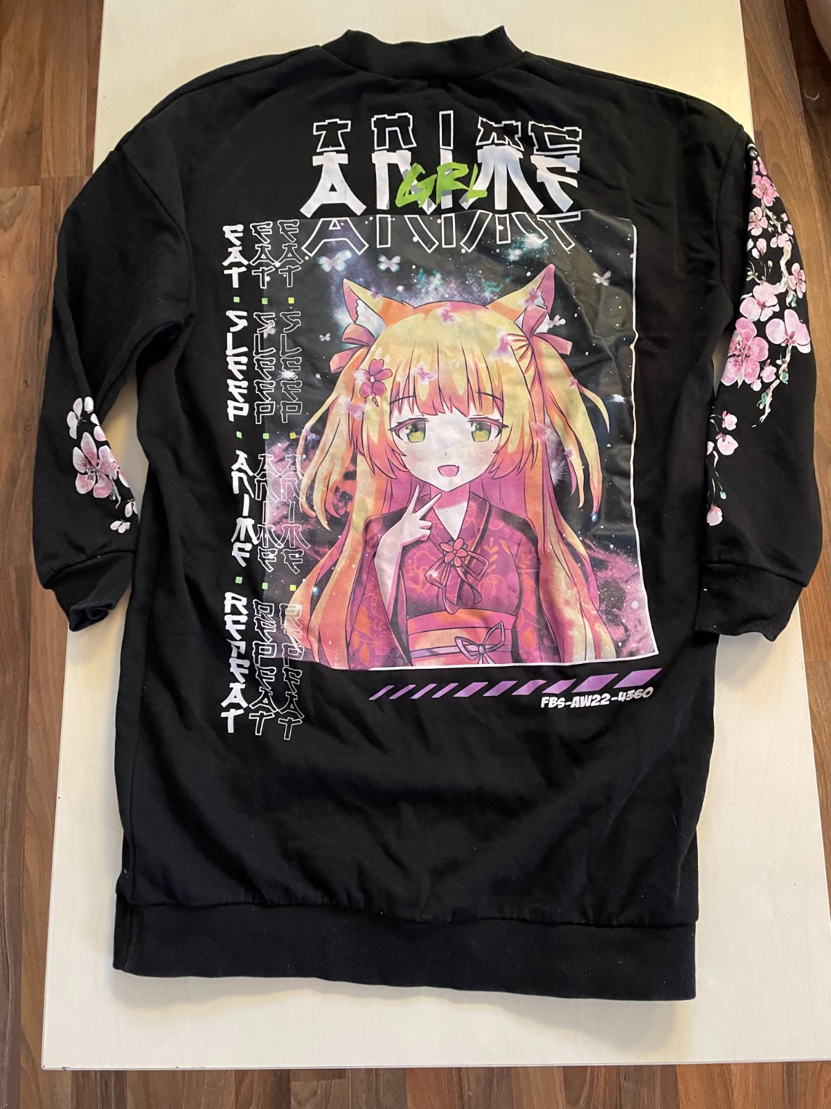 Dlouhá, volná mikina, animé obrázek na záda, vel S
