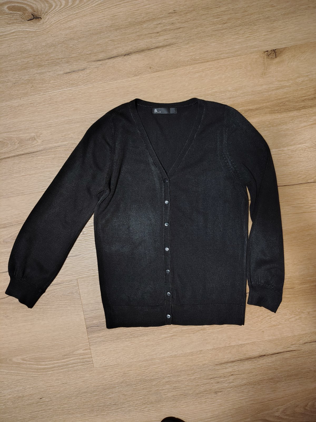 Dívčí úpletový propínací svetřík BHS 158 (13 let) černý. Propínání je na knoflíky ve tvaru srdíček. Svetřík je heboučký a ve skvělém stavu jen po dceři.