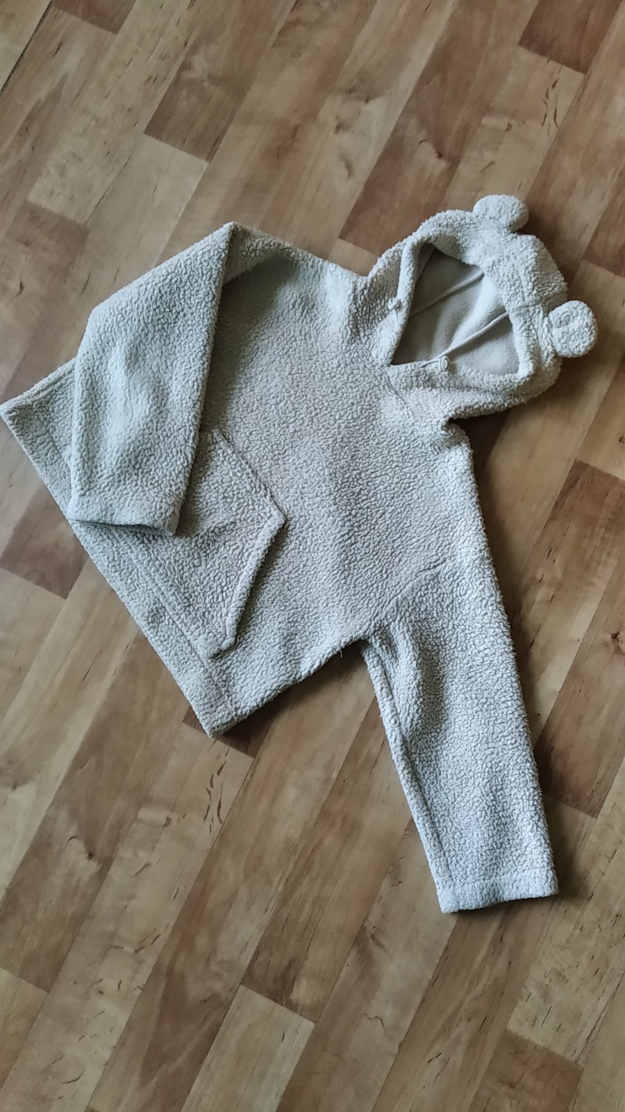 Prodám velmi teplou mikinu, vel.134/140. Celková délka je 46 cm, materiál 100%polyester. Dobrý stav.