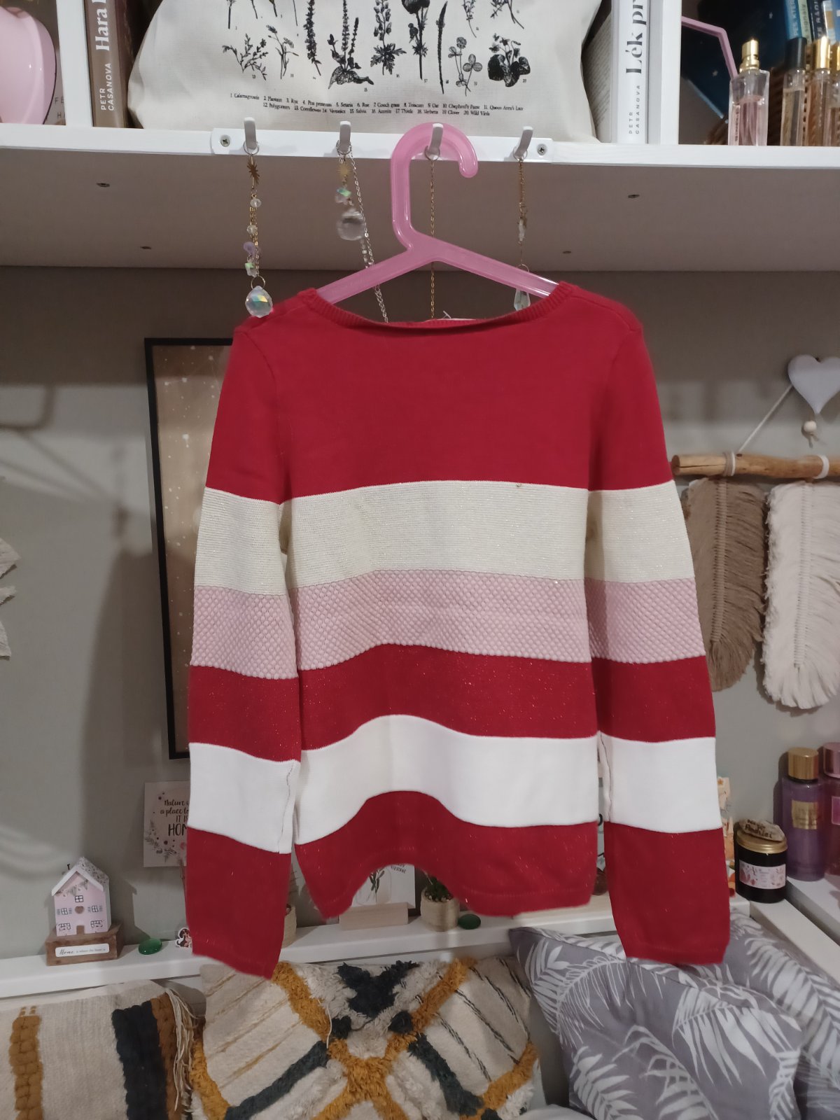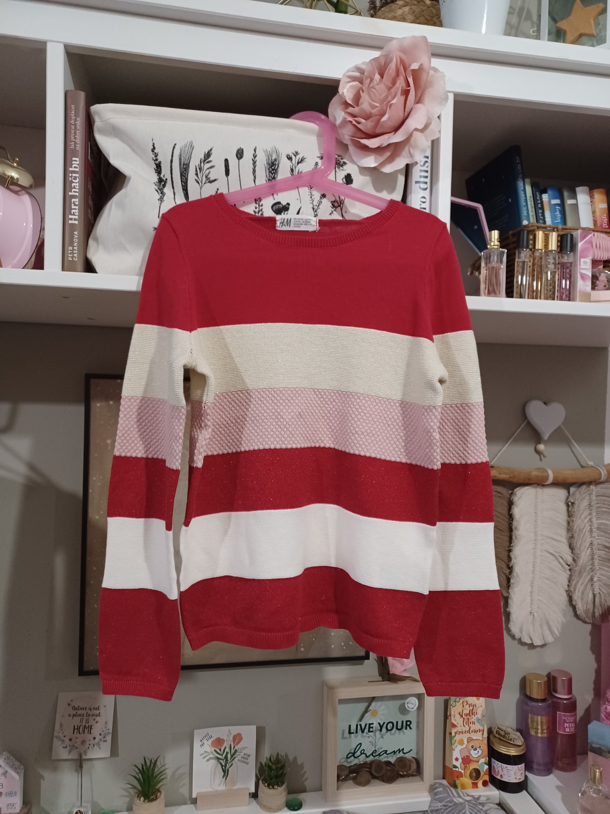 Krásný třpytivý svetr z H&M, chybičky v prošití, zohledňuji v ceně. PC 400. Jednou vzatý.