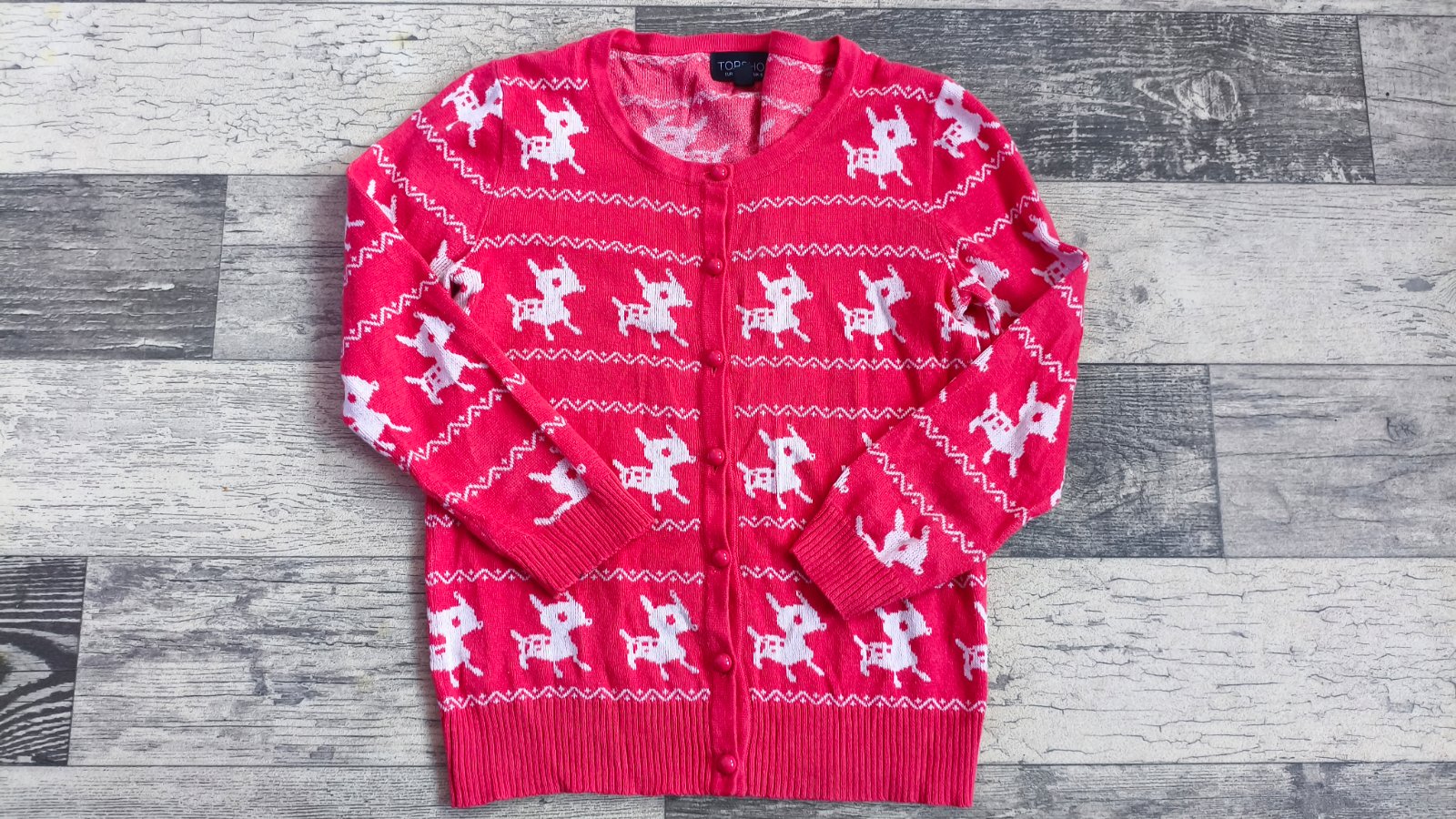 Krásný svetřík na knoflíky s uvedenou vel.XS -neodpovídá .