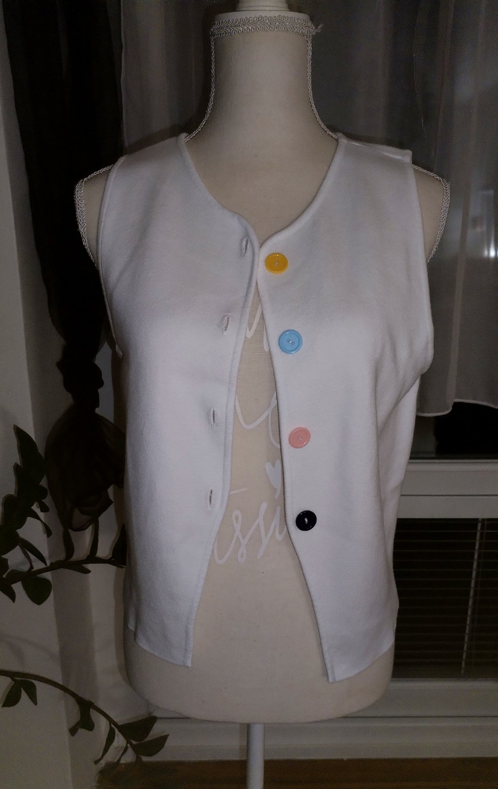Bílá vesta s barevnými knoflíky vel.M