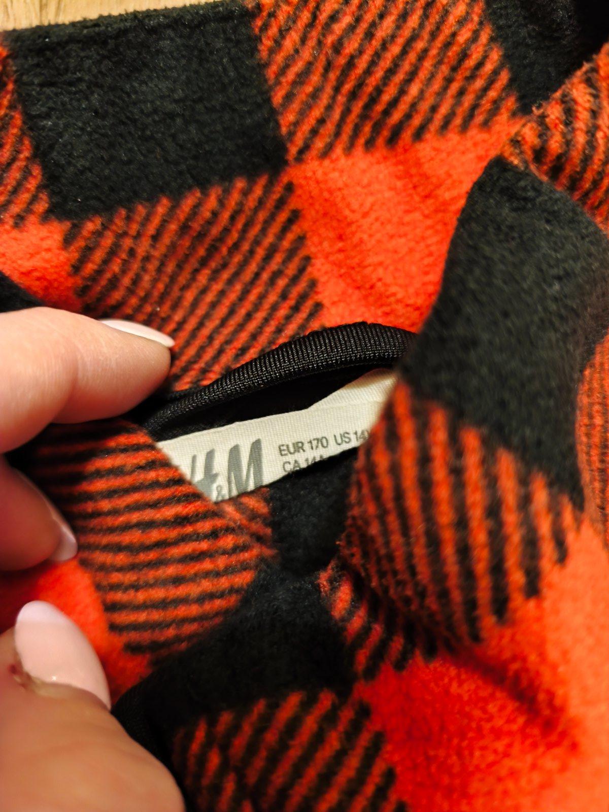 Málo nošená kostkovaná mikina H&M 170, klidně i XS/S. Praný flees, koženkový úchyt na zipu má nějaký kazík. Sytě červená, nešlo nafotit.