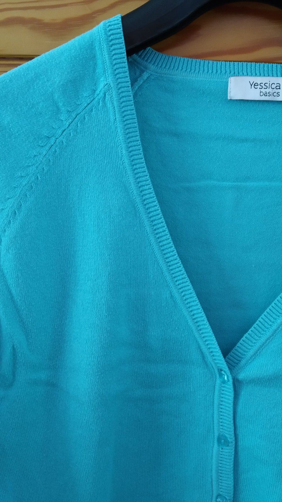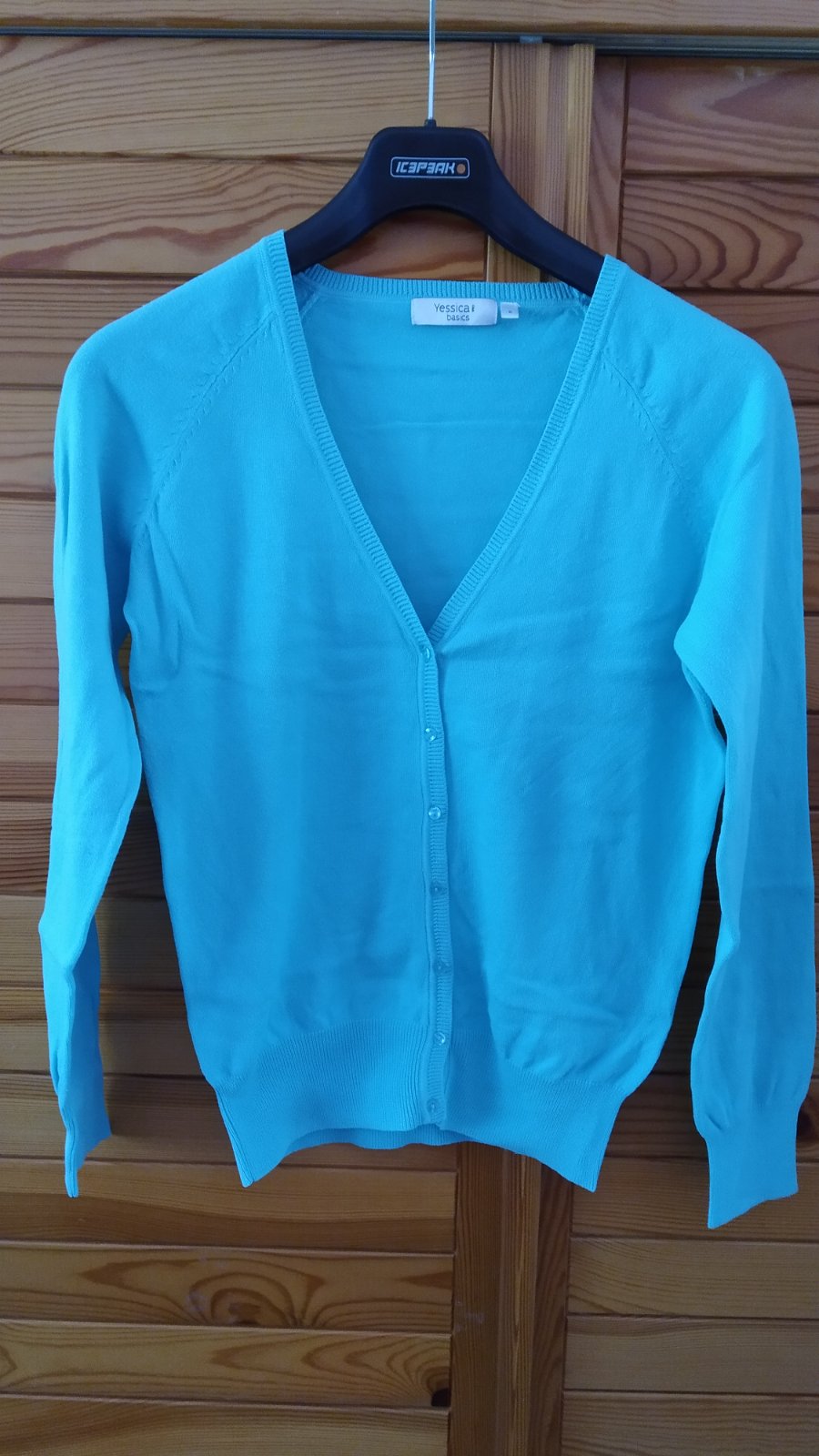 Bez fleků, dírek, není vytahaný. Místy žmolík. Uvedená velikost XS, ale německé velikosti bývají větší, odpovídá spíše S. Průramky 46 cm Délka 58 cm Rukáv od výstřihu 69 cm, vnitřní 49 cm Daruji ...