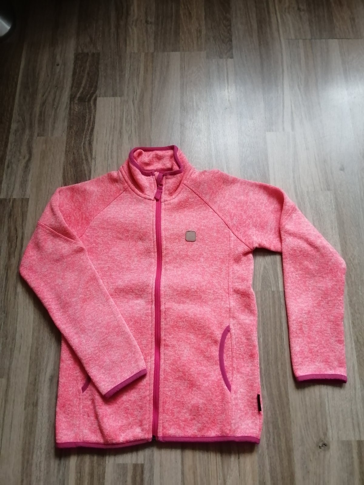 teplá mikina z huňatého silného fleesu, nošená na spaní na chatě. Vel. uvedena 128, ale vydrží déle. Měřte. Praný flees bez žmolíků. délka 56cm, šířka 46cm, rukáv 49/61cm