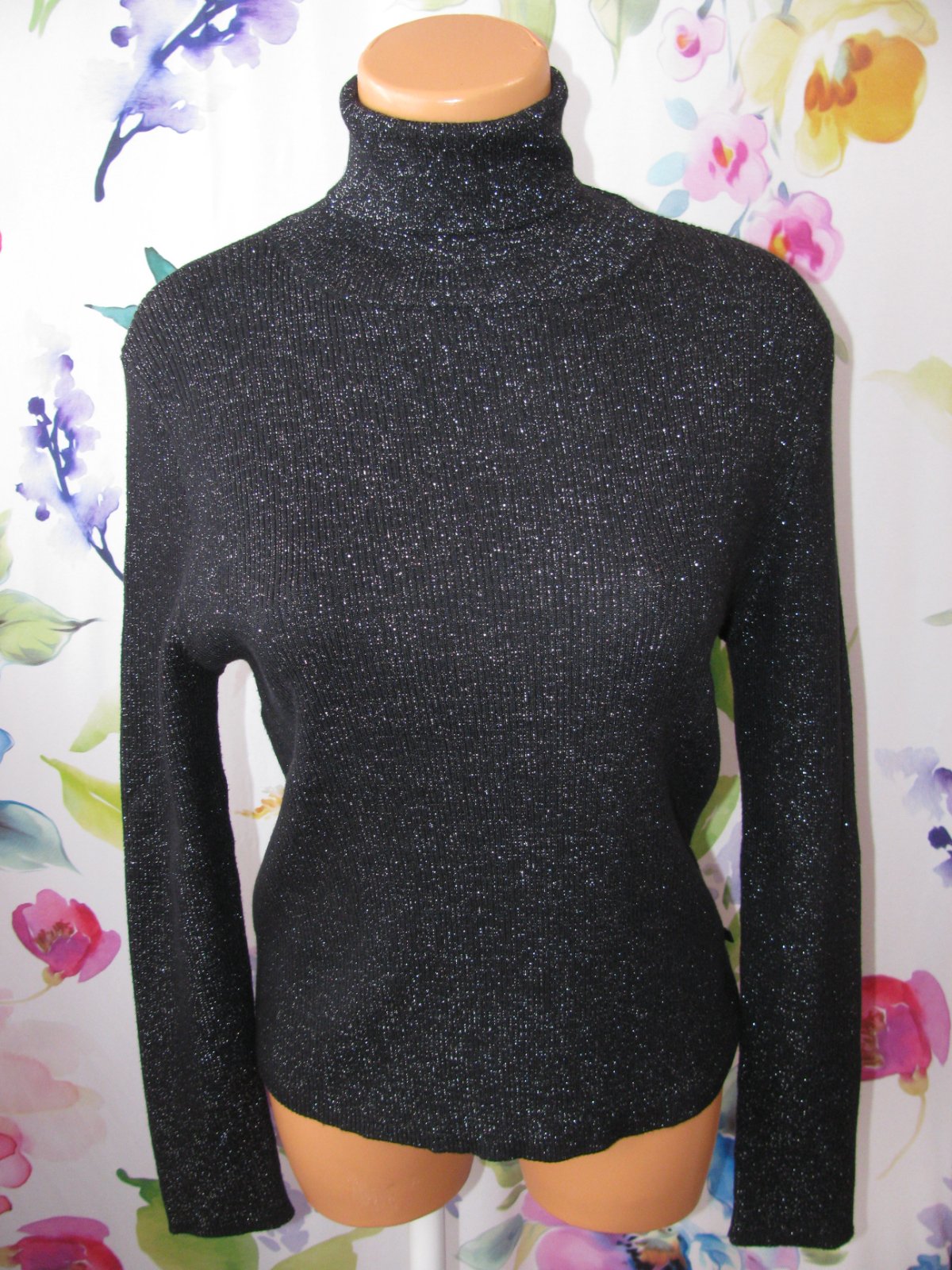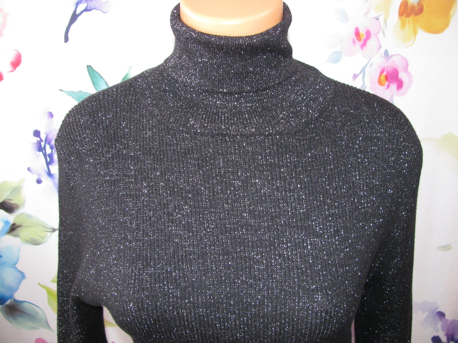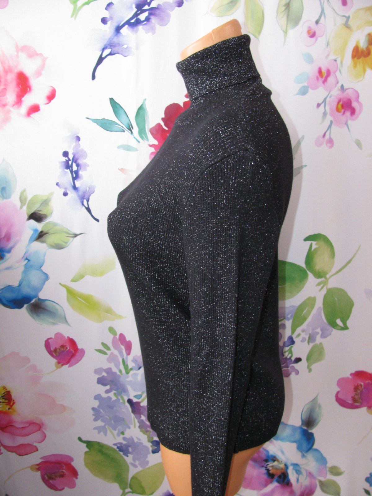Luxusní pružný, řádkovaný rolák se stříbrnou nitkou, svetr je velice jemný, pohodlný, neškrábe. 57% viskoza, 23% polyamid, 20% metalica.