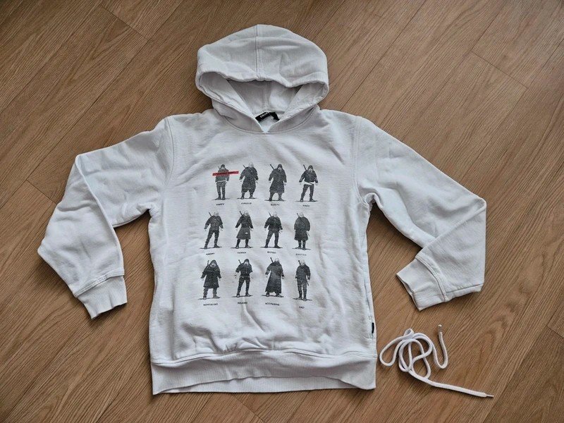Prodávám kamarádce, mikina značky Cropp, velikost XS, dle mého syna bych řekla ze je vhodná pro velikost 152/158, bílá s potiskem, má kapsy, šňůrka z kapuci při praní vylezla, vpředu malý flíček, ještě poslouží