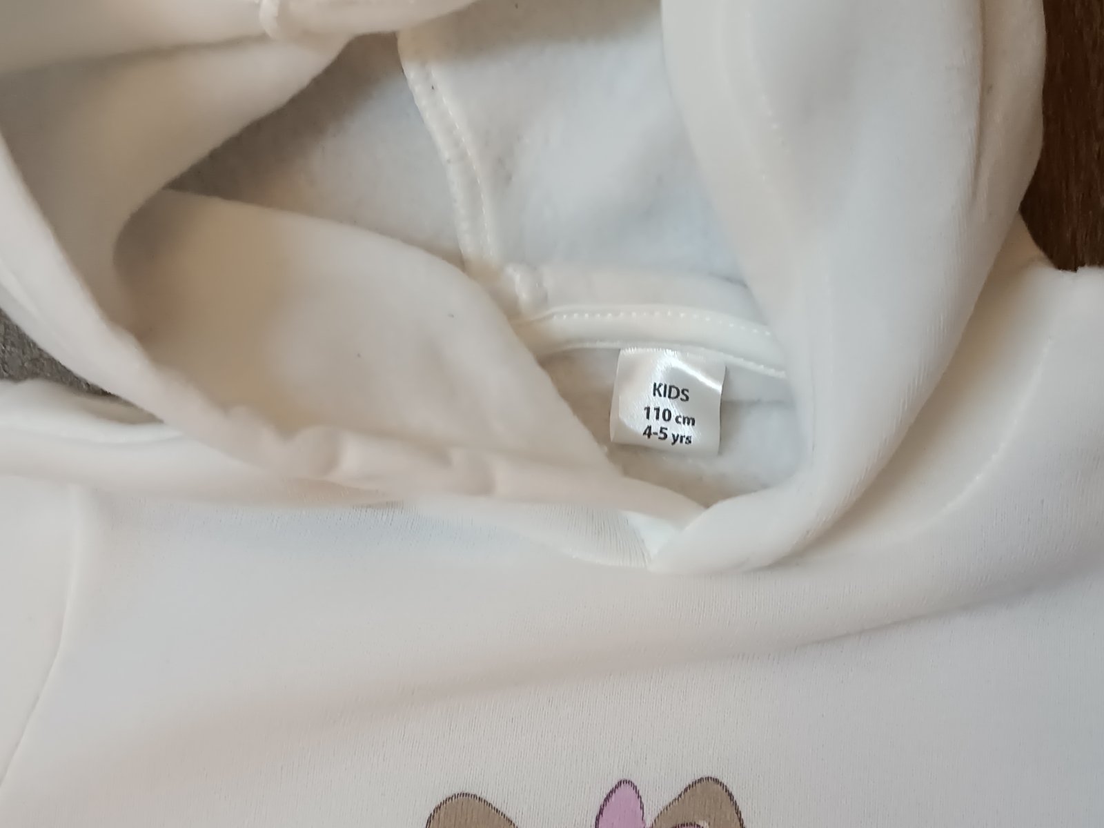 2) nová bílá mikina s kapucí, zn. Kids, vyteplená, s motivem lesních zvířátek, velikost psaná 110, ale je menší (104), pouze vyzkoušená