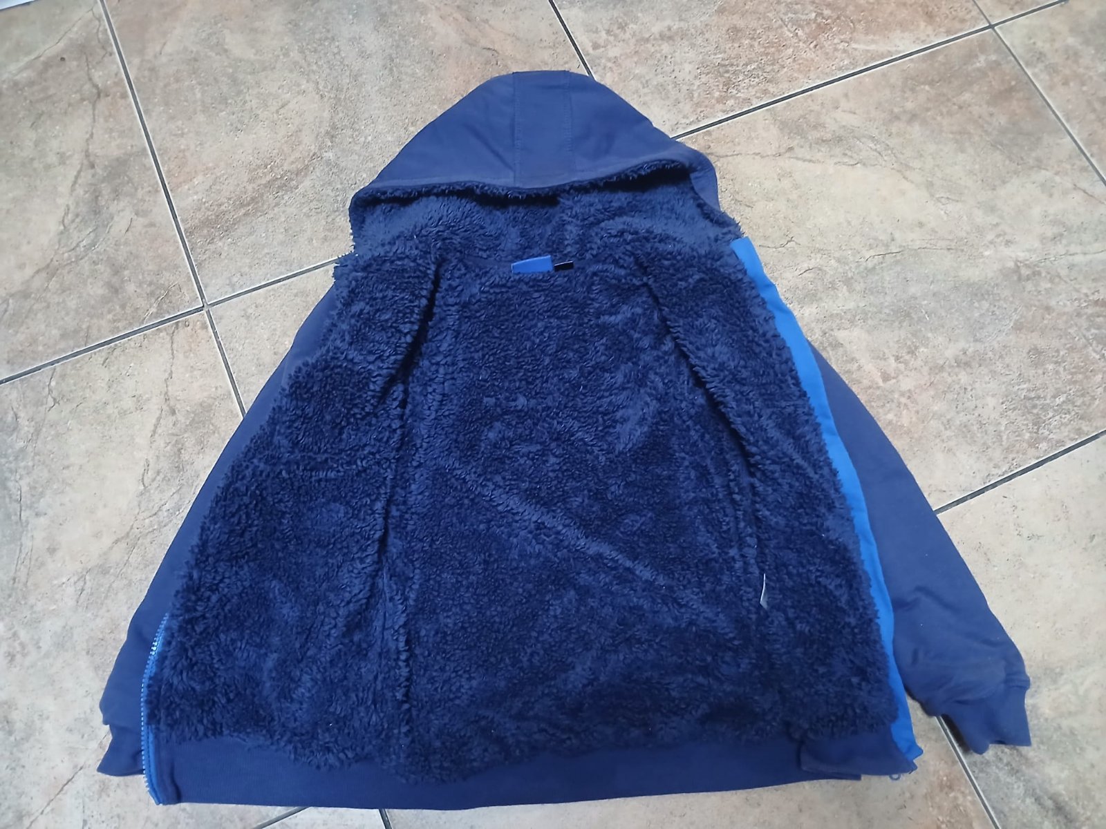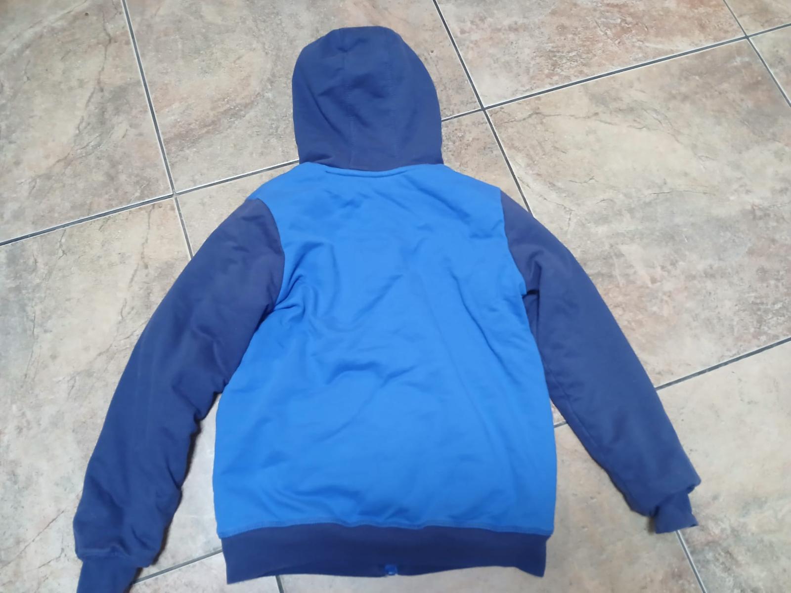 Bavlněná teplákovka, zap. na zip, boční kapsy, lemy do nápletu, krytý zip pod krkem, 72% bavlna, 28% polyester. Trochu se loupe číslo-viz foto, jinak bez fleků a děr. Značka PEPPERTS Velikost 140 ...