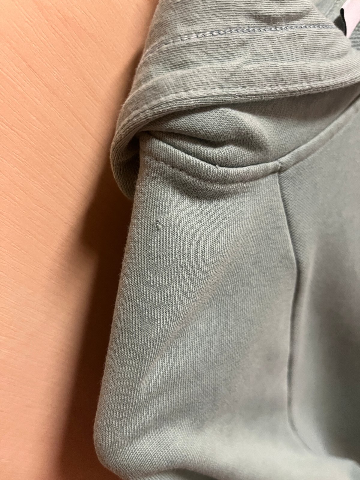 Mikina je ve velmi pěkném stavu, bohužel na rameni je malá dírka viz foto