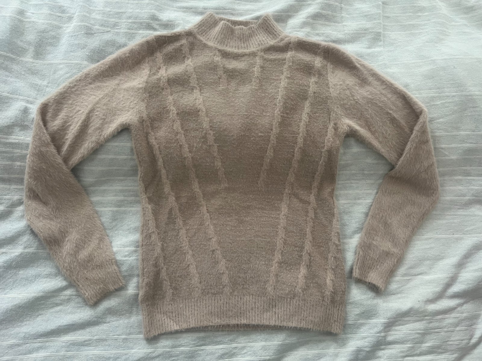 Se stojáčkem. Psaná velikost M/L, doporučila bych spíše M. Kdyby nebylo zatrhnuté nitky u pravého ramene vpředu, byl by jako nový. Myslím, že půjde ustřihnout, aniž by se páralo.