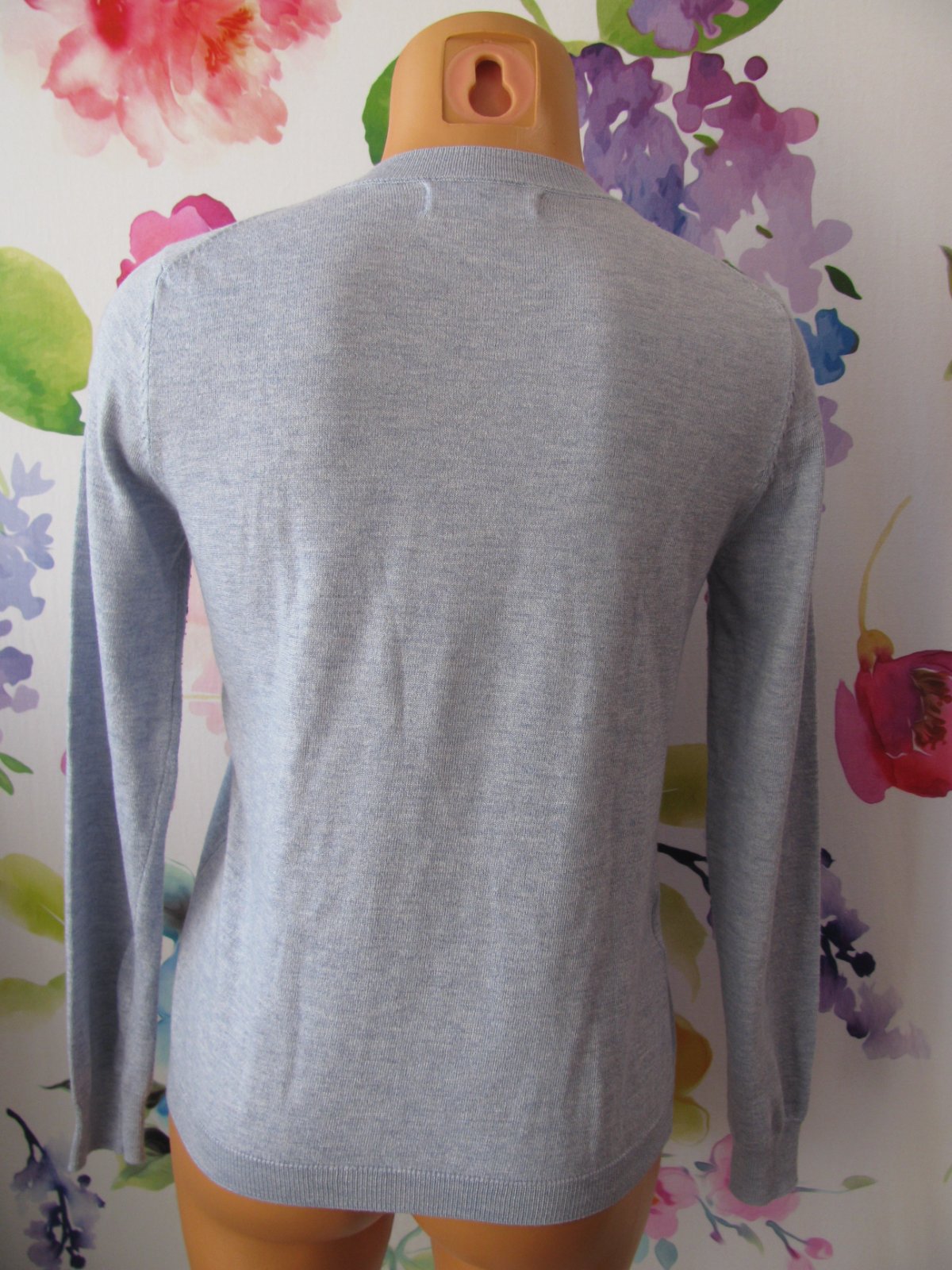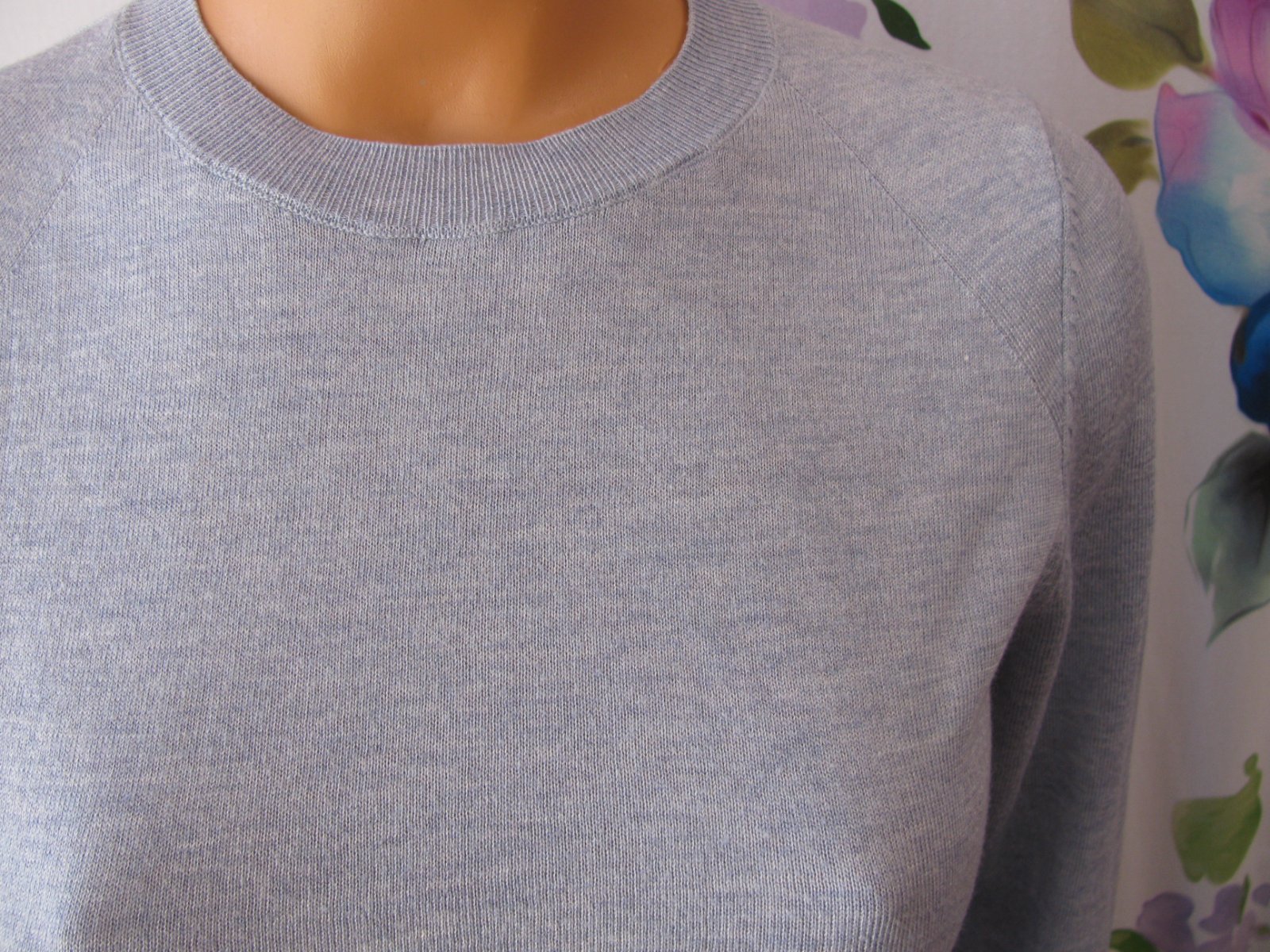 Krásný světle modrý svetřík se střikem, štítek stran materiálu ustřižen. Top stav bez vady.