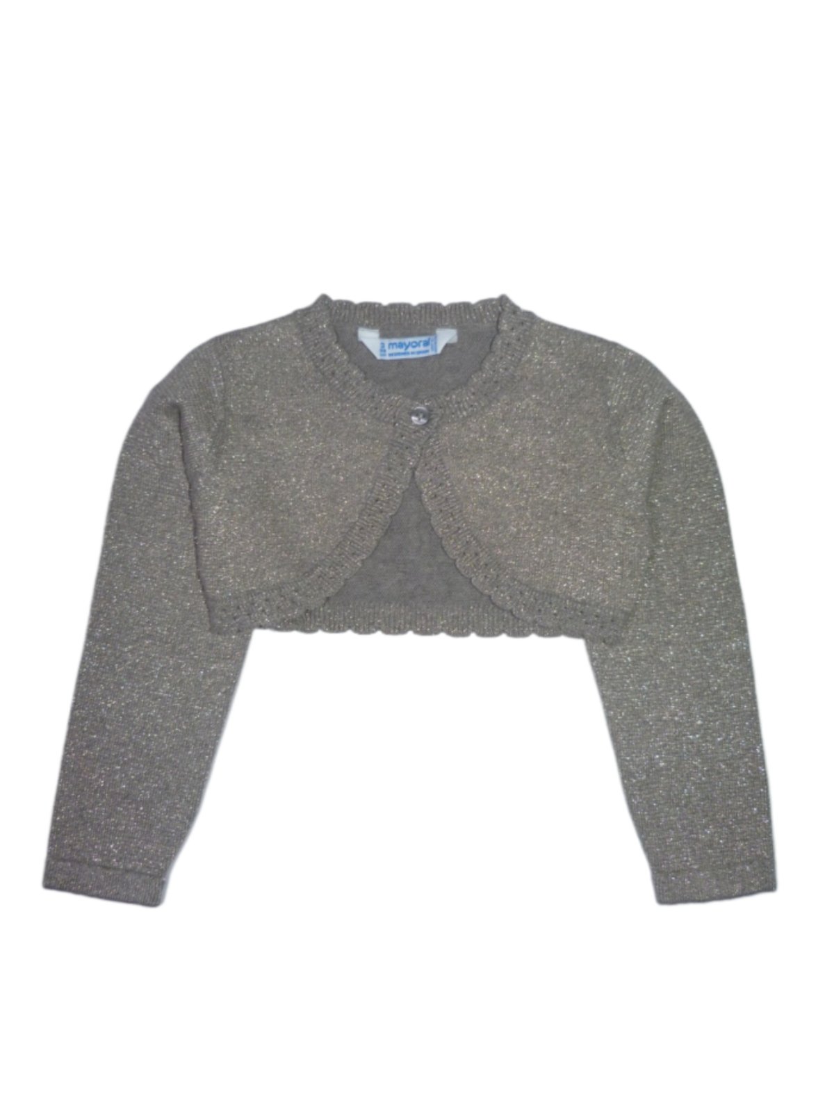 Mayoral nenošené bolérko vel. 98, barva šedo-hnědo-zlatá, d 18cm, š 26cm,