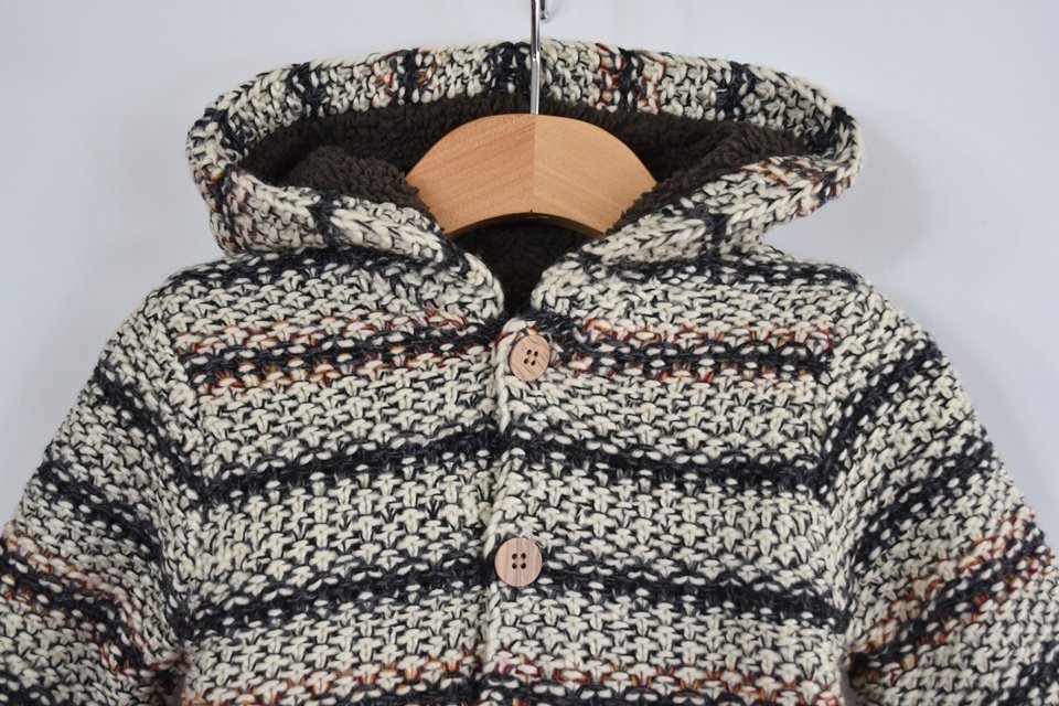Hnědo béžový pletený svetr vel. 9 - 12 m, celý podšitý fleesem.