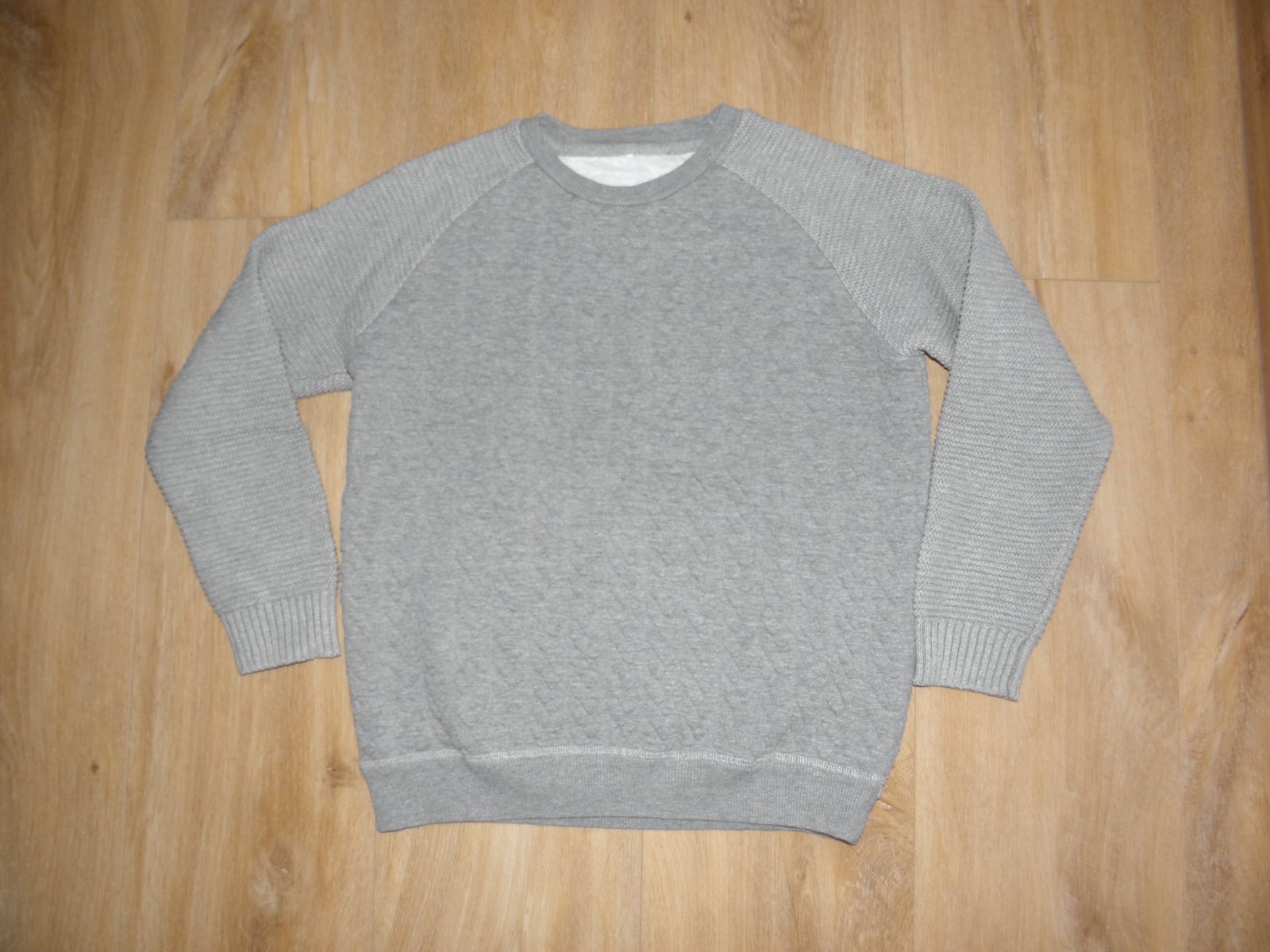 Prodám chlapeckou mikinu s pletenými rukávy. Cedulka odstřižena, značku a velikost již nevím, prosím, měřte. Mikina byla nošena málo, na přední a zadní části materiálu jsou drobné žmolíky, rukávy bez žmolíků. Stále hezká.