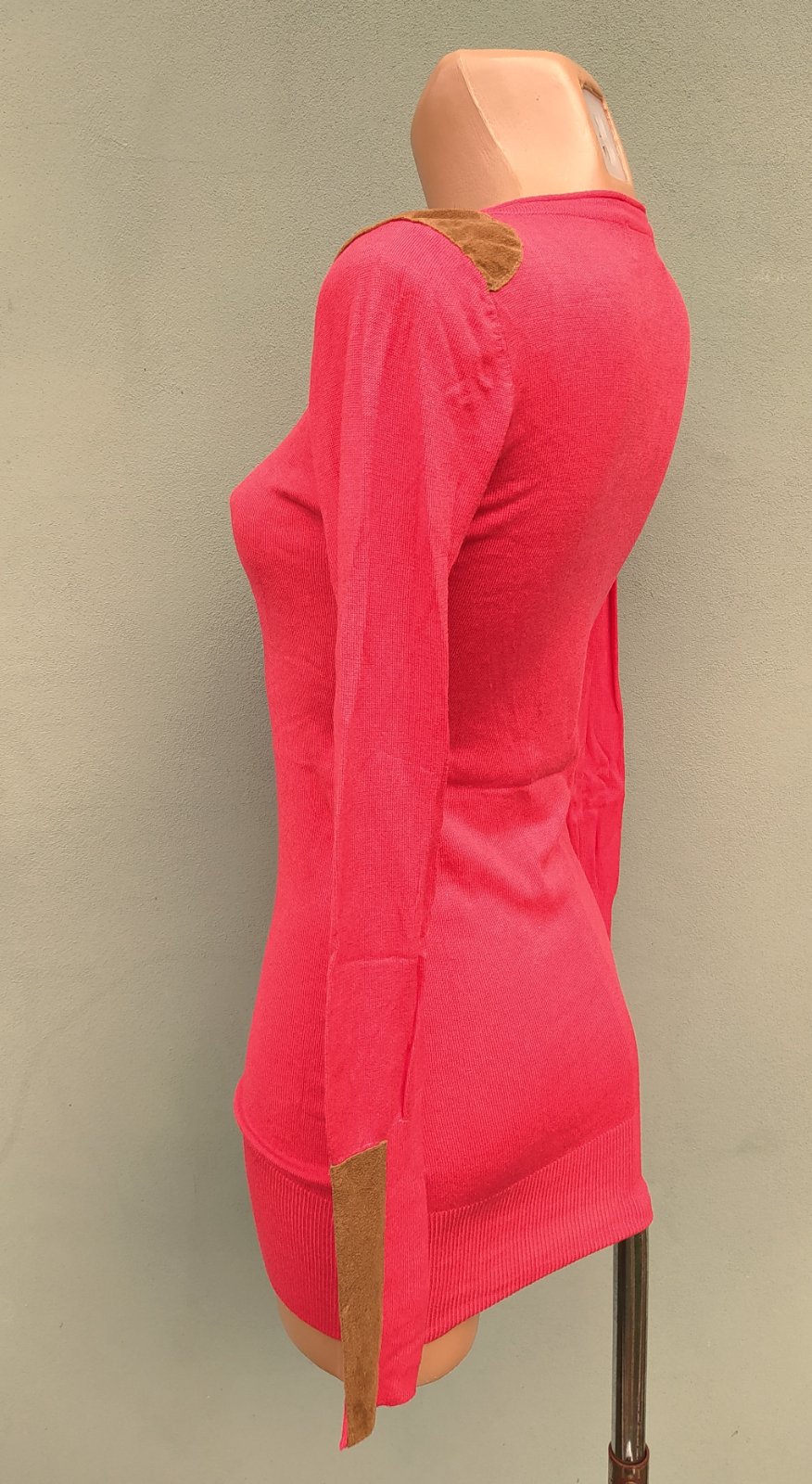 Jako nový. Krásný stav. Bez známek nošení (nenošený). Barva světlá jahodově červená. Velikost odhaduji - prosím MĚŘTE!