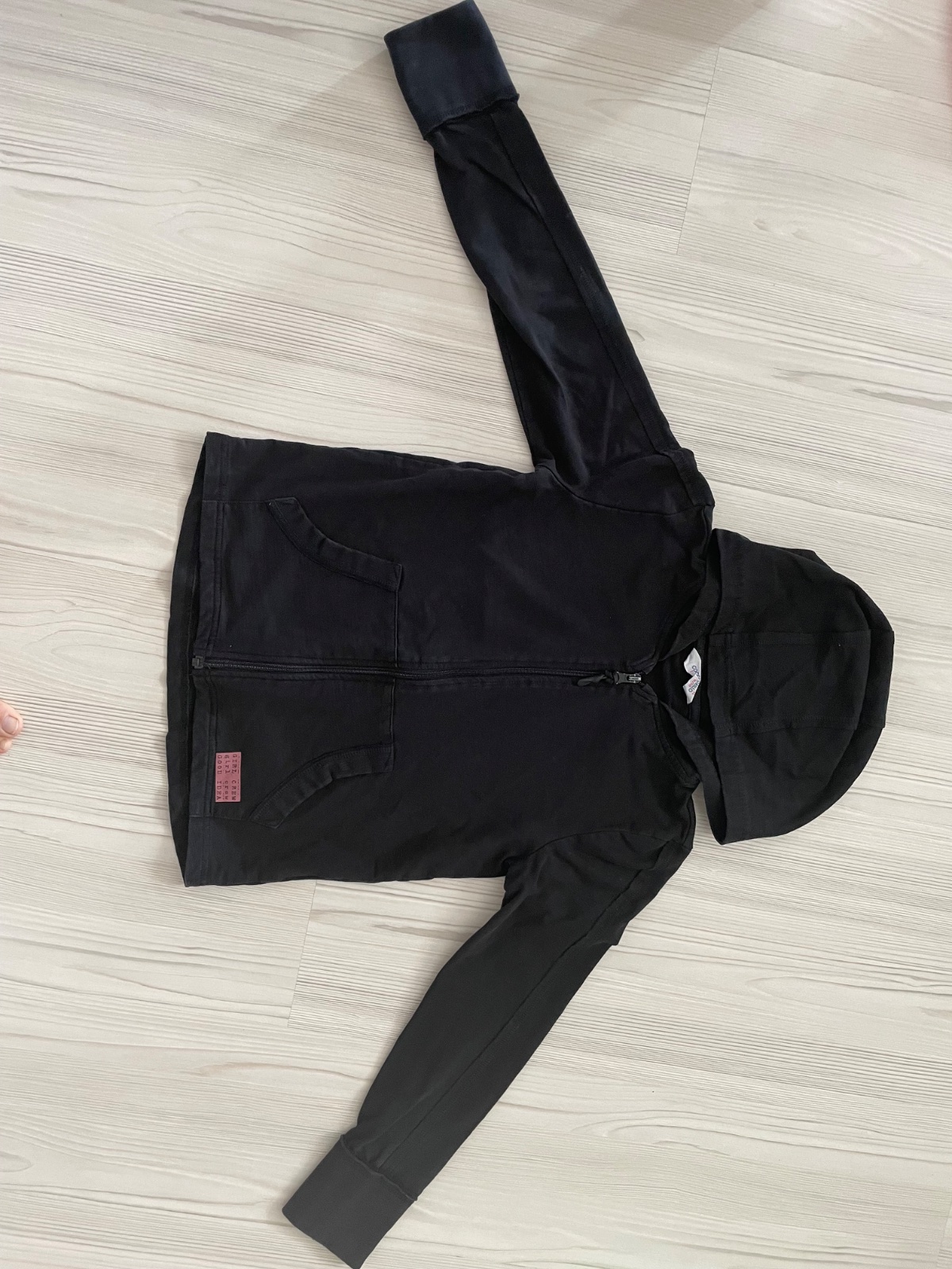 Nádherná kvalitní mikina/delší kabátek, je silnější, žádná tenká, napředu kapsy, uvnitř tygrovaná BA se smyčkou jako u mikin), mater. BA+elast, takže nežmolkuje, dl. 68, š. 2x40, rukáv od ramenního...