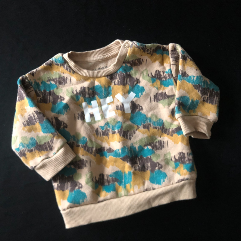 bavlna, polyester, párkrát vzatá, velikost 6 - 9 měsíců, rukáv od krku 28 cm.