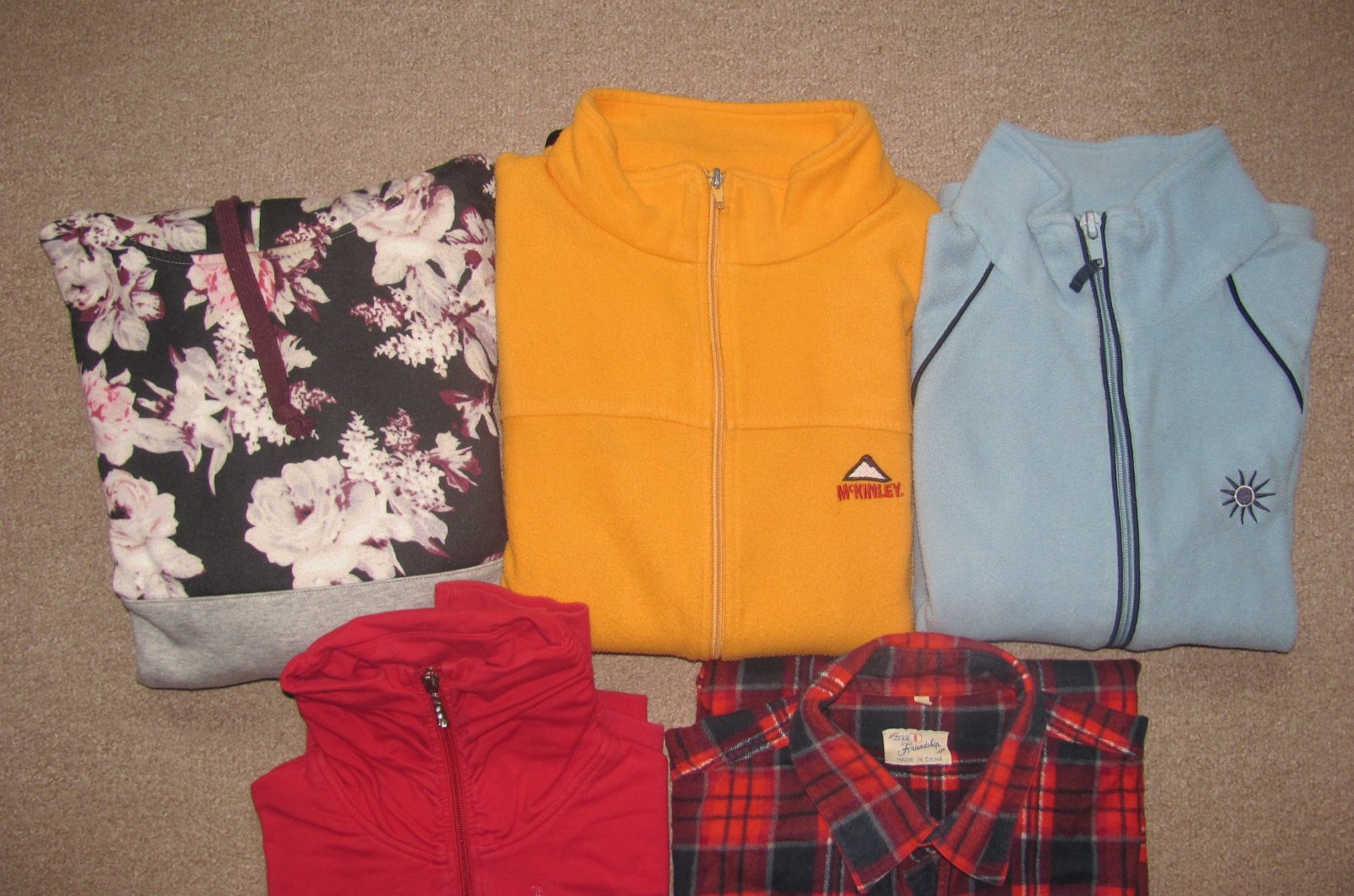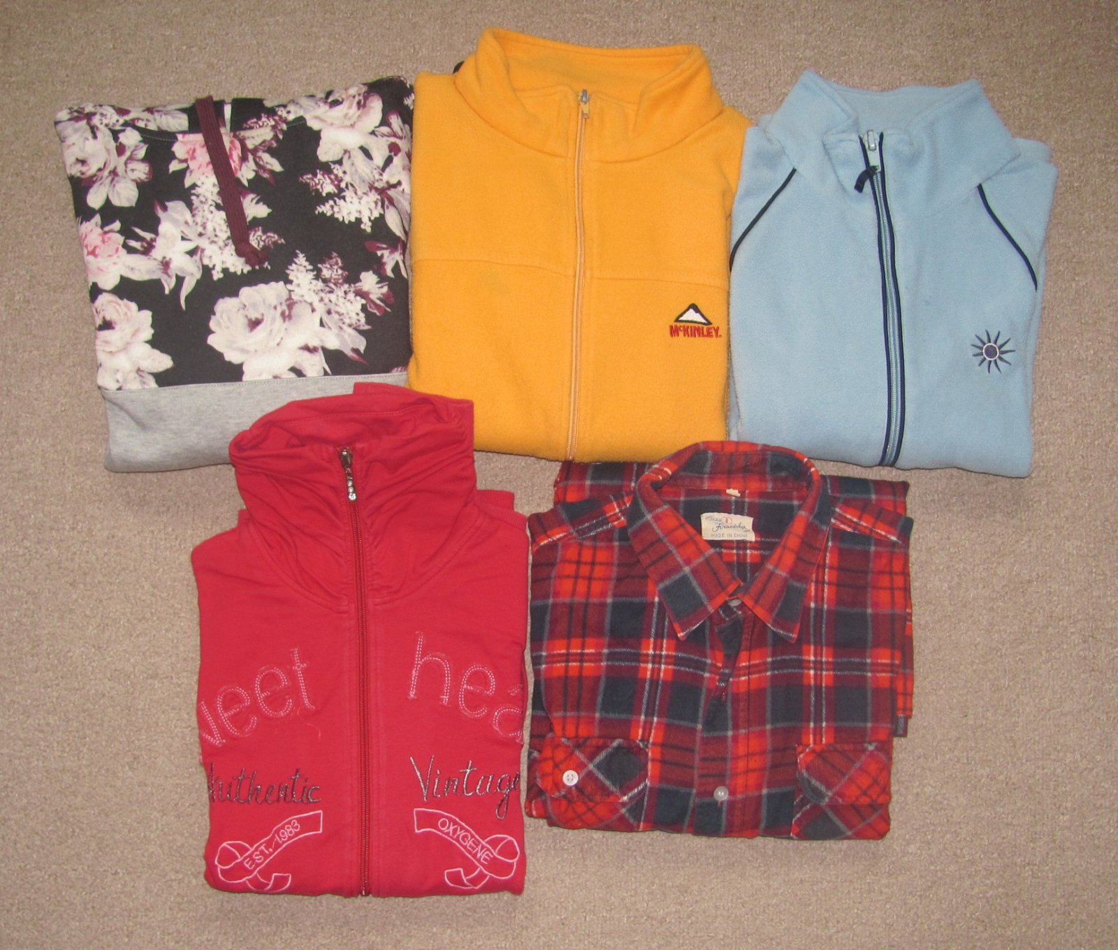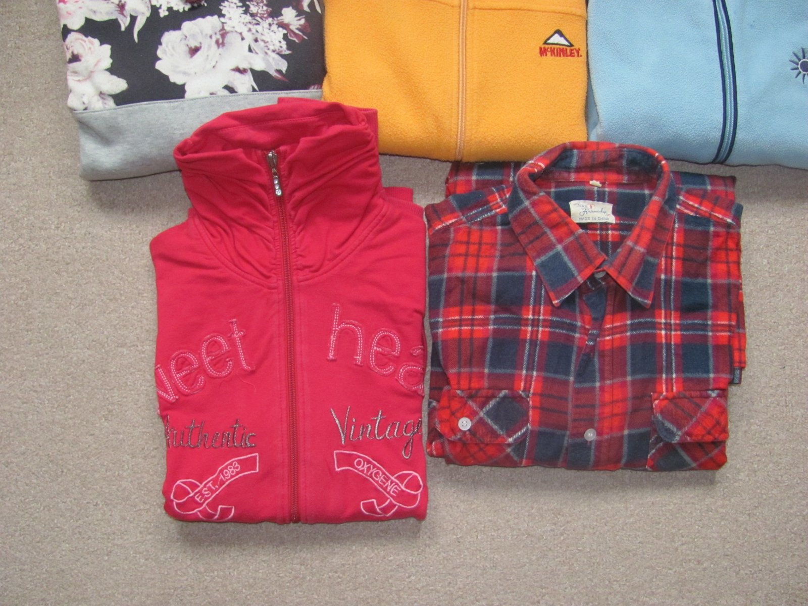 Mikiny / Flanelová košile, 3 mikiny na zip, 1 s kapucí. Velikost L.