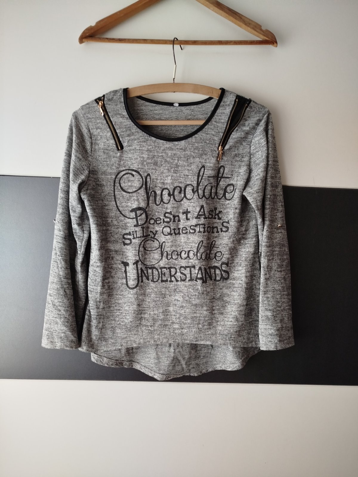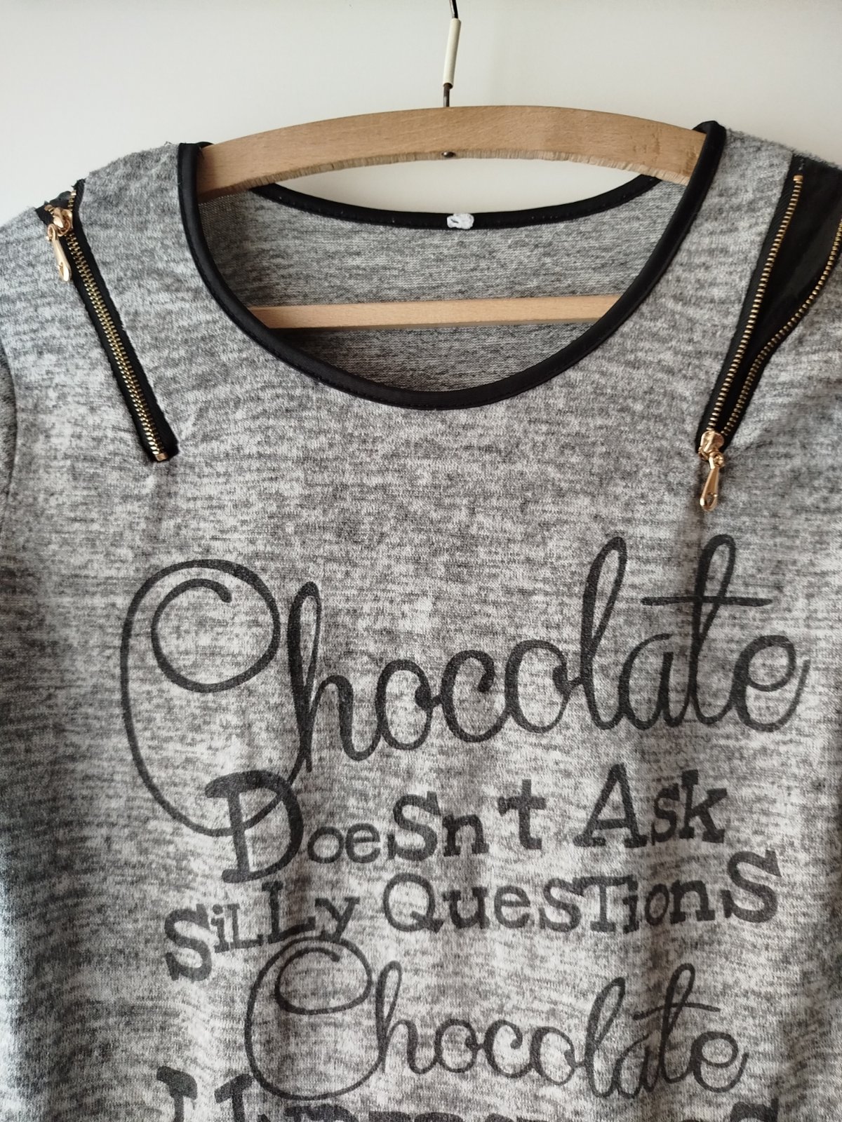 Lehčí svetřík pro milovníky čokolády, délka 62cm, šířka 45cm, rukávy se dají zkrátit sepnutím, nezničený