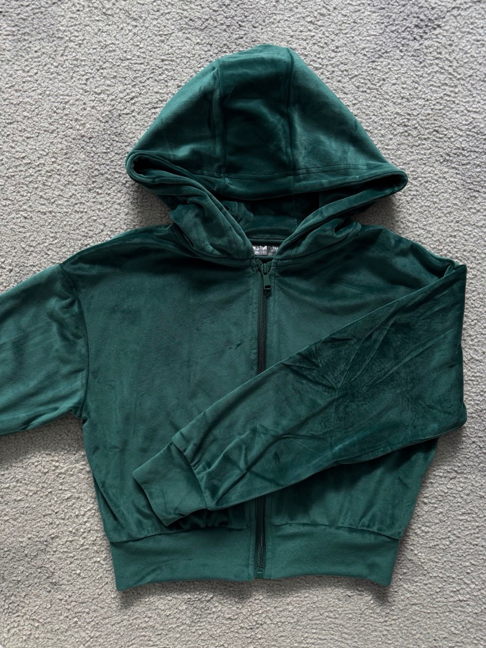 v super stavu, stále jako nová, pěkná, sušivá, z teplákoviny velikost uvedena 134/140 délka 36 cm, šířka 46 cm, rukáv od krku 55 cm