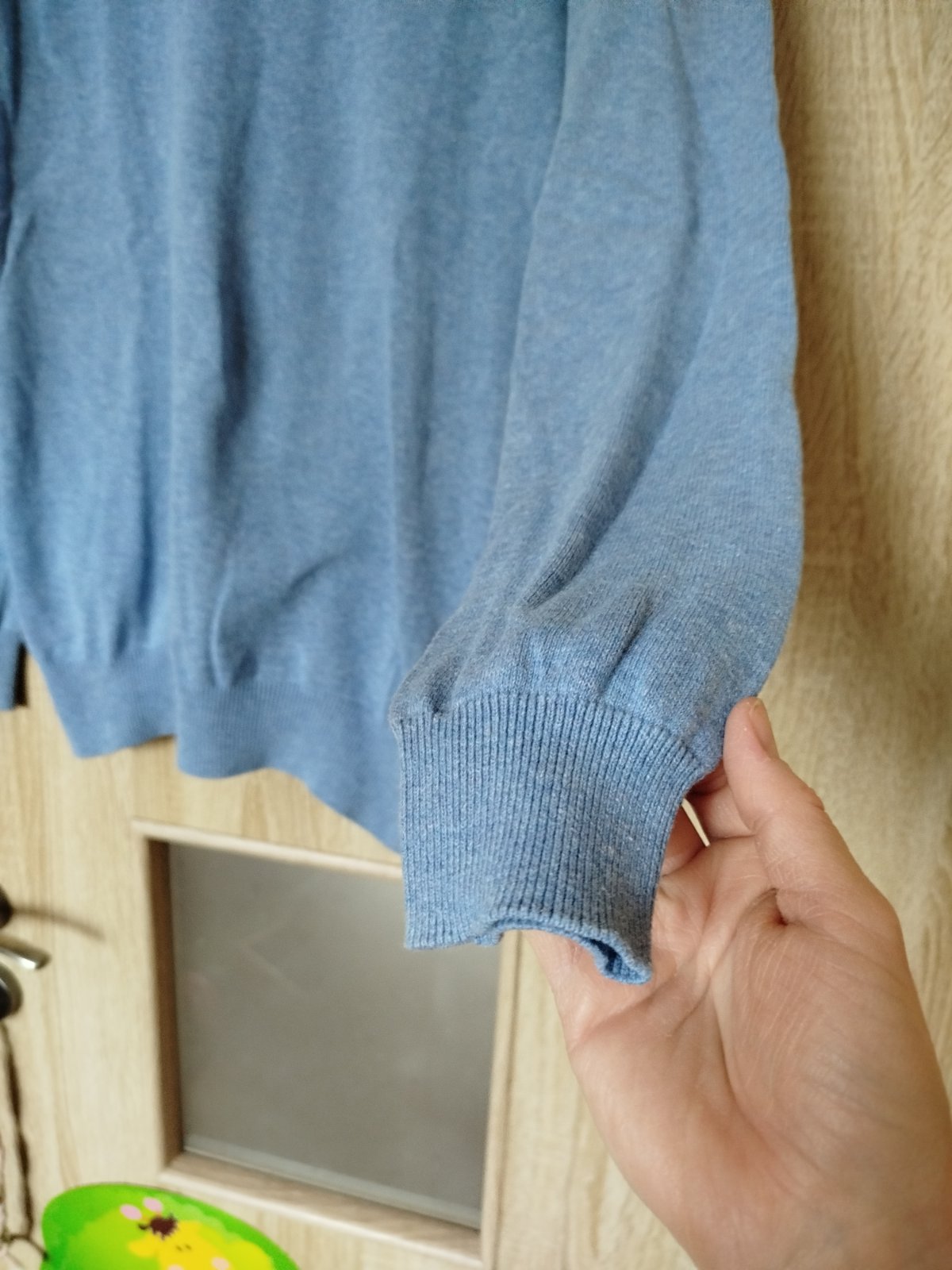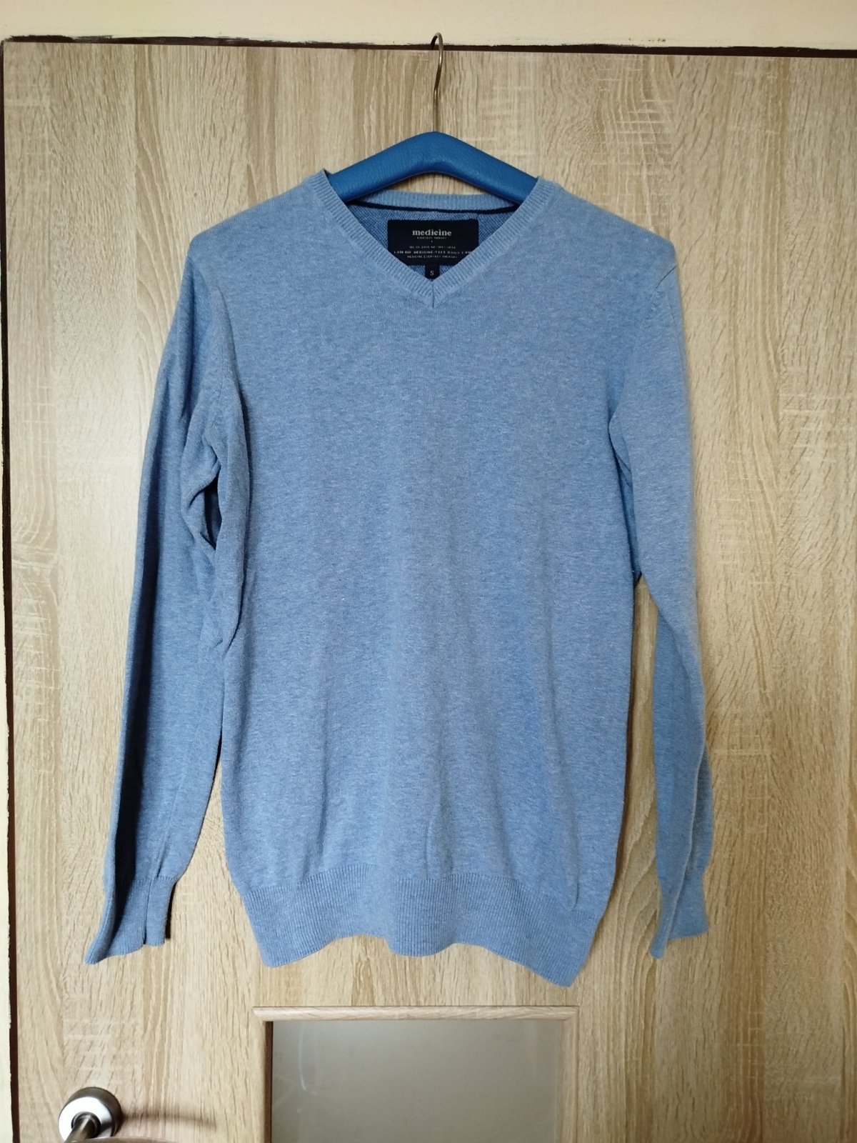 Prodám bavlněný světřík, bleděmodrý, velikost 74, méně nošený, dobrý stav.