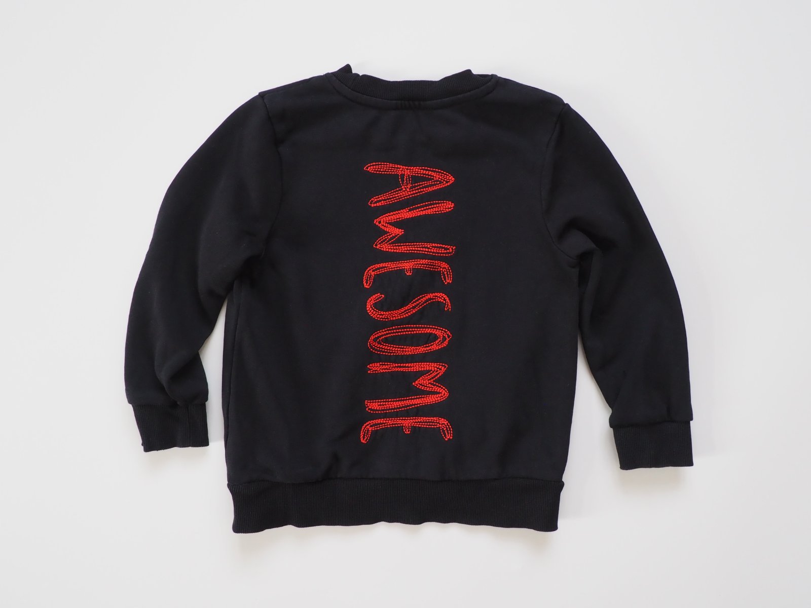 Mikina s příšerkou a nápisem na zádech awesome.