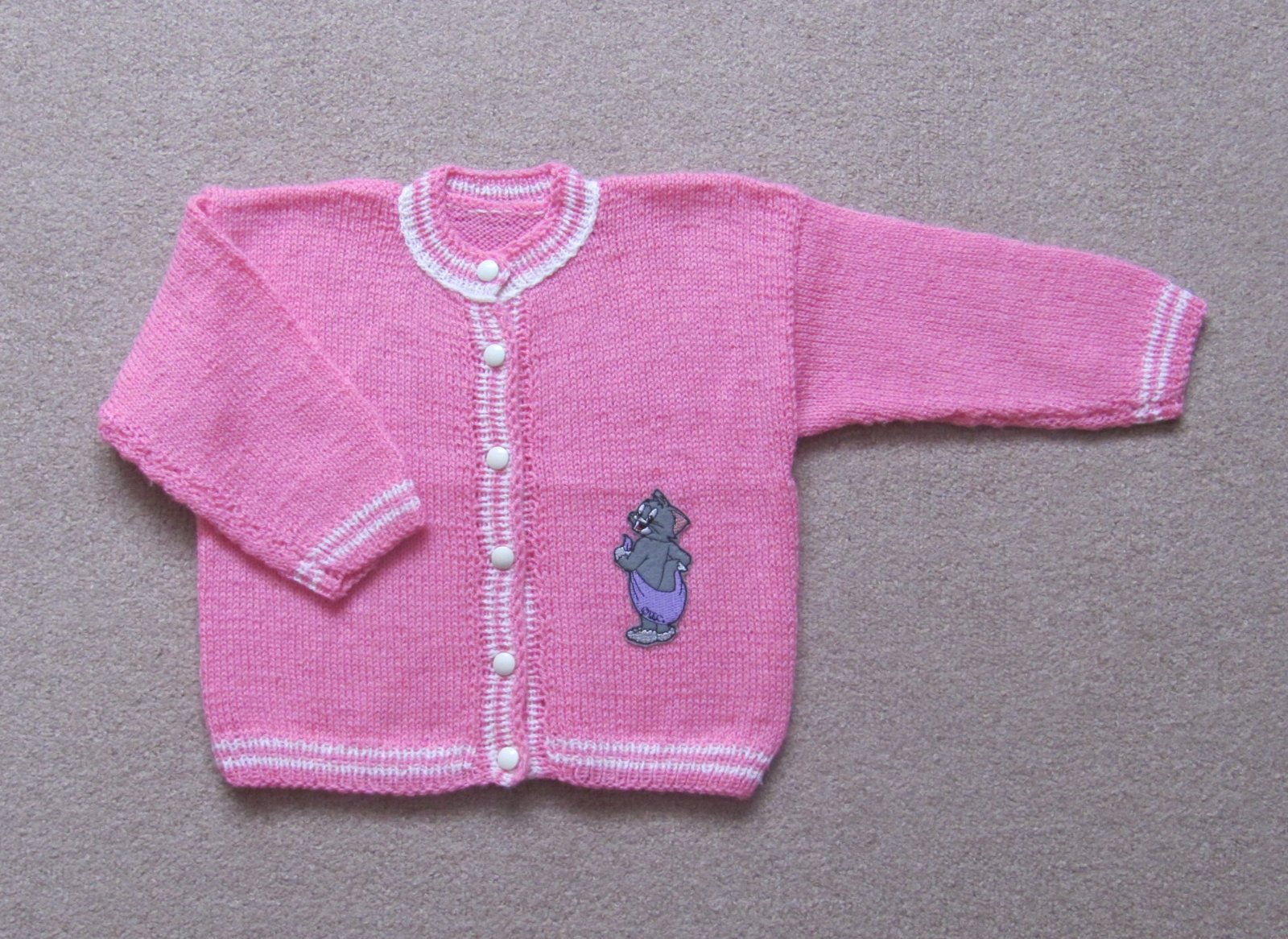 Dívčí růžový svetřík, s nášivkou Toma, velikost cca 3 roky, šířka 34 cm, délka 35 cm.