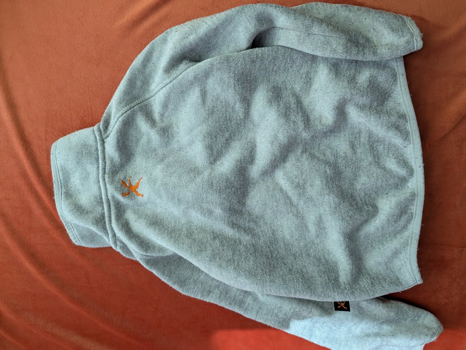 Prodám mikinu s kapucí. Nošená, praná, vady jsem nenašla, snad je počínající prací žmolík. Vše viz. detailní foto Vel. uvedena 110 Rozměry: celková délka zad 41 cm, šířka pod průramky 35,5 cm a ru...