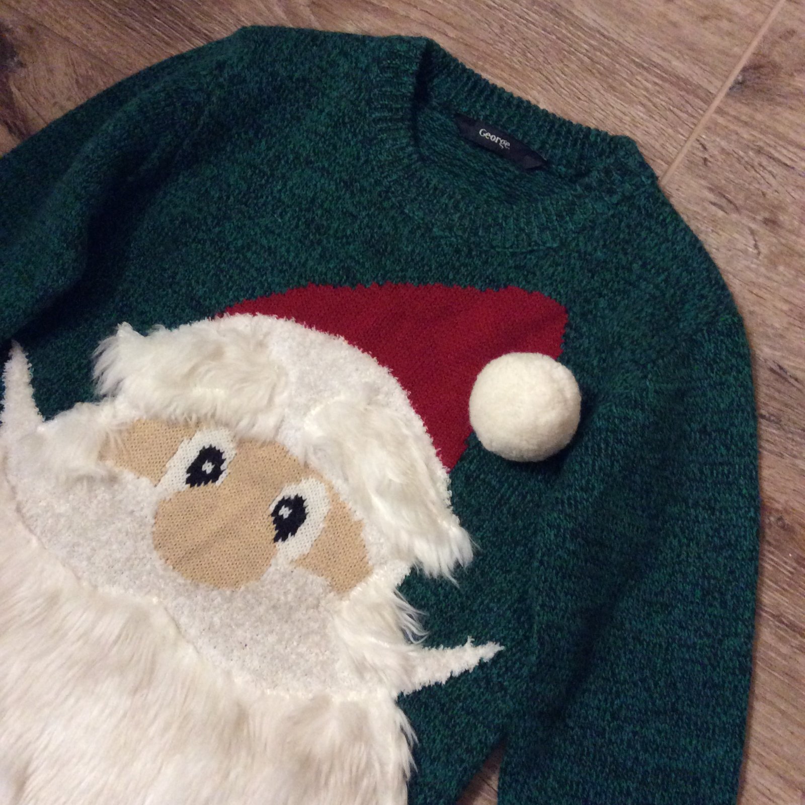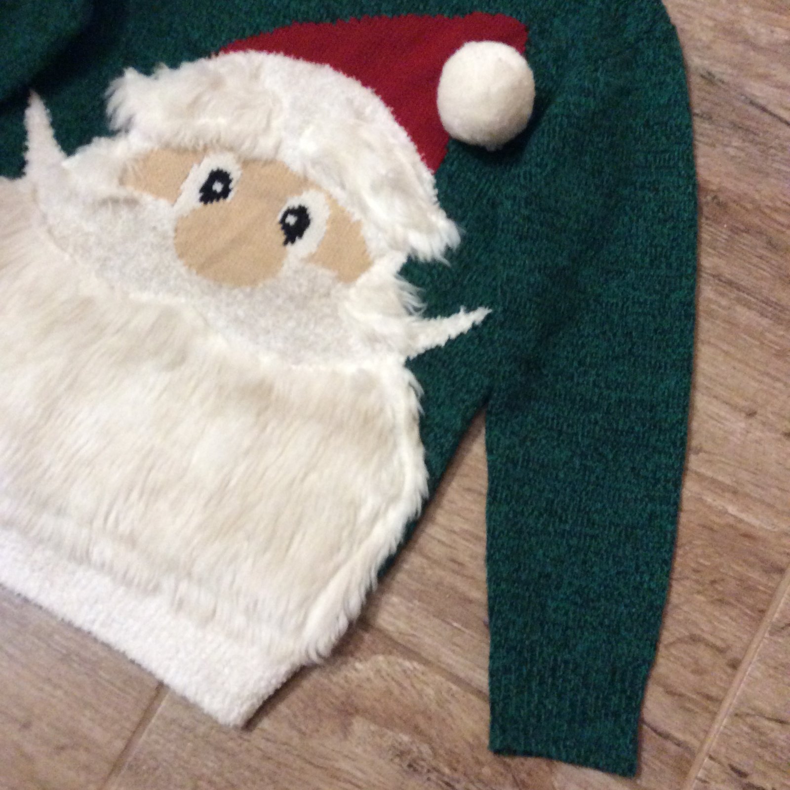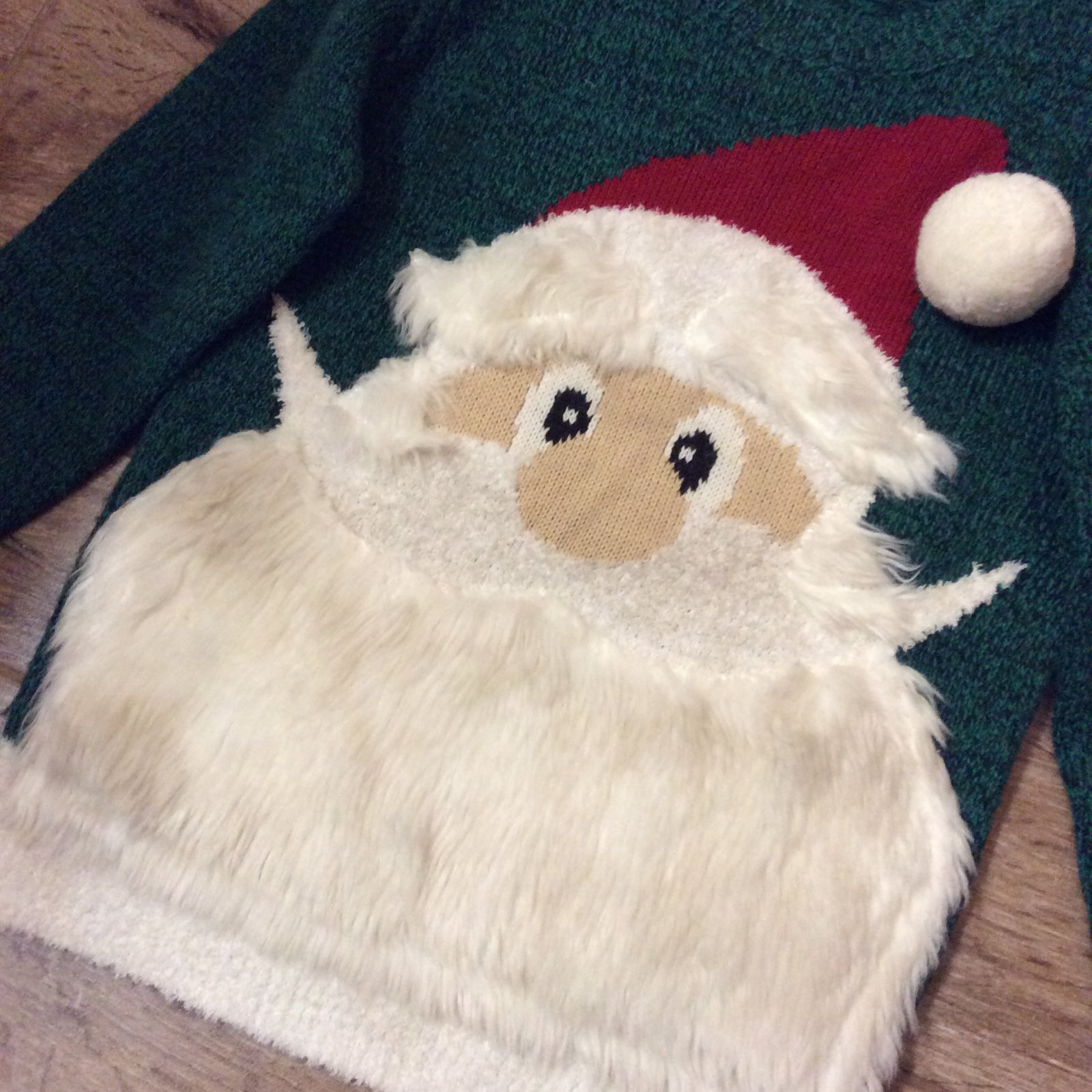 - krásný vánoční svetr zdobený chlupatými vousy a našitou bambulkou