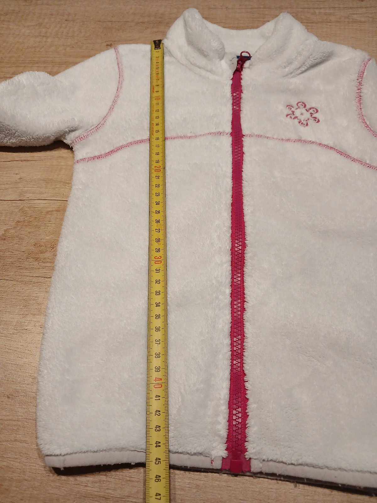 Chlupata a tepla mikina na zip. Delka 44cm, sirka 33cm, rukav 45cm