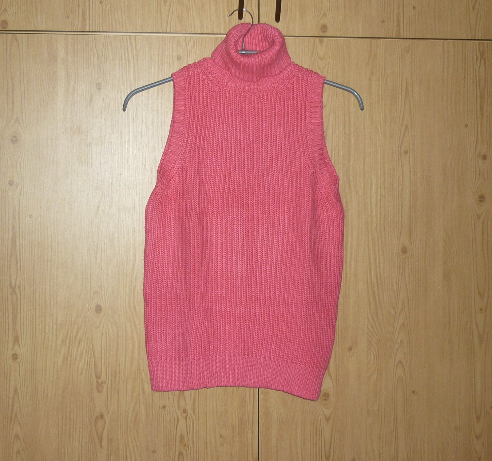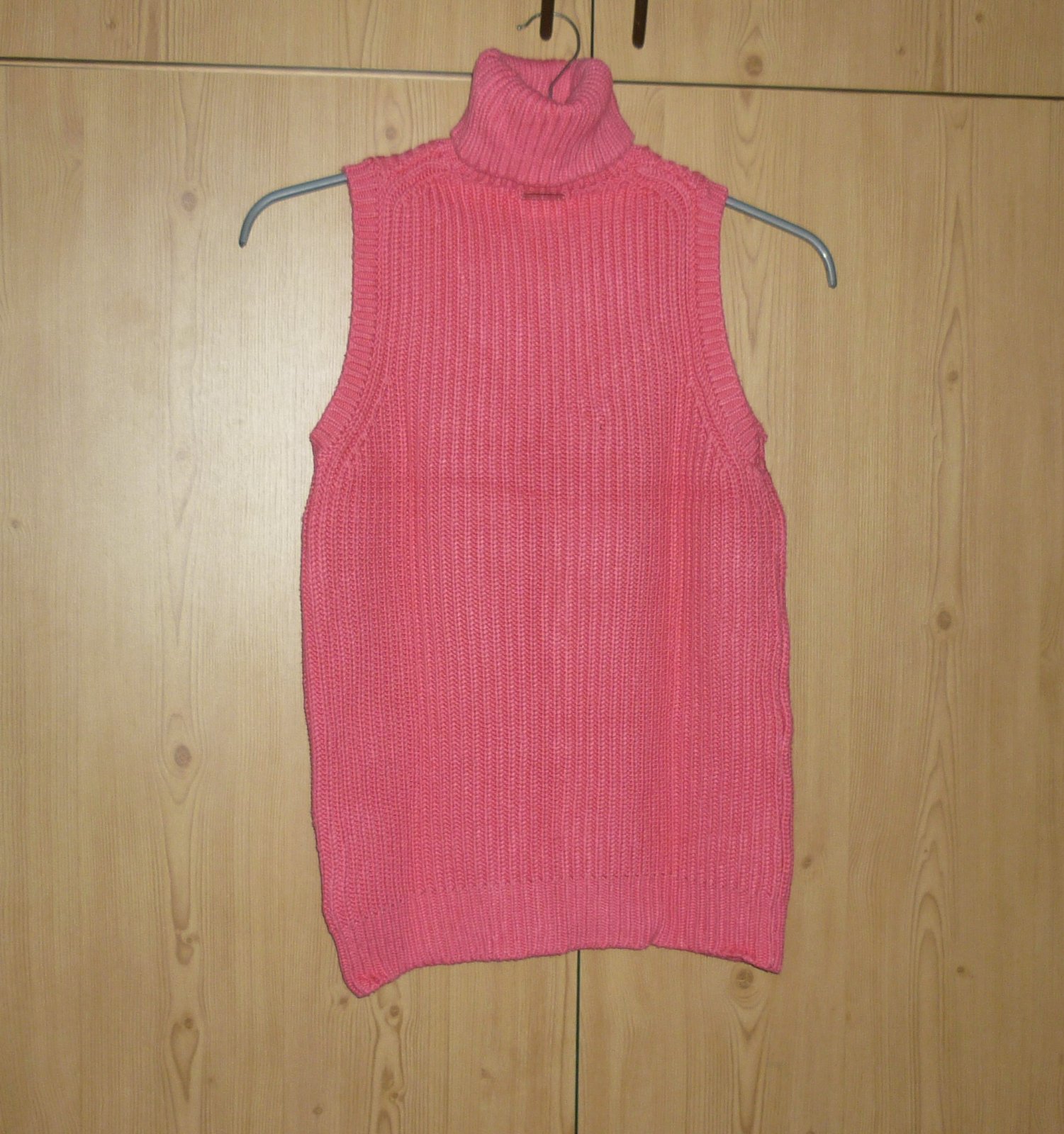 Prodám sytě růžovou pletenou vestu s rolákem Michael Kors, 1x na sobě, ve velmi dobrém stavu. Barva je opravdu krásná sytá, bez map (bohužel se mi nepodařilo lépe vyfotit). Vzadu za krkem kovové logo. Materiál: 50% bavlna , 40% viskóza, 9% nylon a 1% elastan. Velikost: XS. Rozměry: šířka v místě podpaží v klidu 43cm x 2 (po natáhnutí 56cm x 2), celková délka 59cm. Cena: 260,-Kč + poštovné. Koukněte na moje další inzeráty, třeba si něco vyberete a ušetříte na poštovném. Tel.: 728 455 567