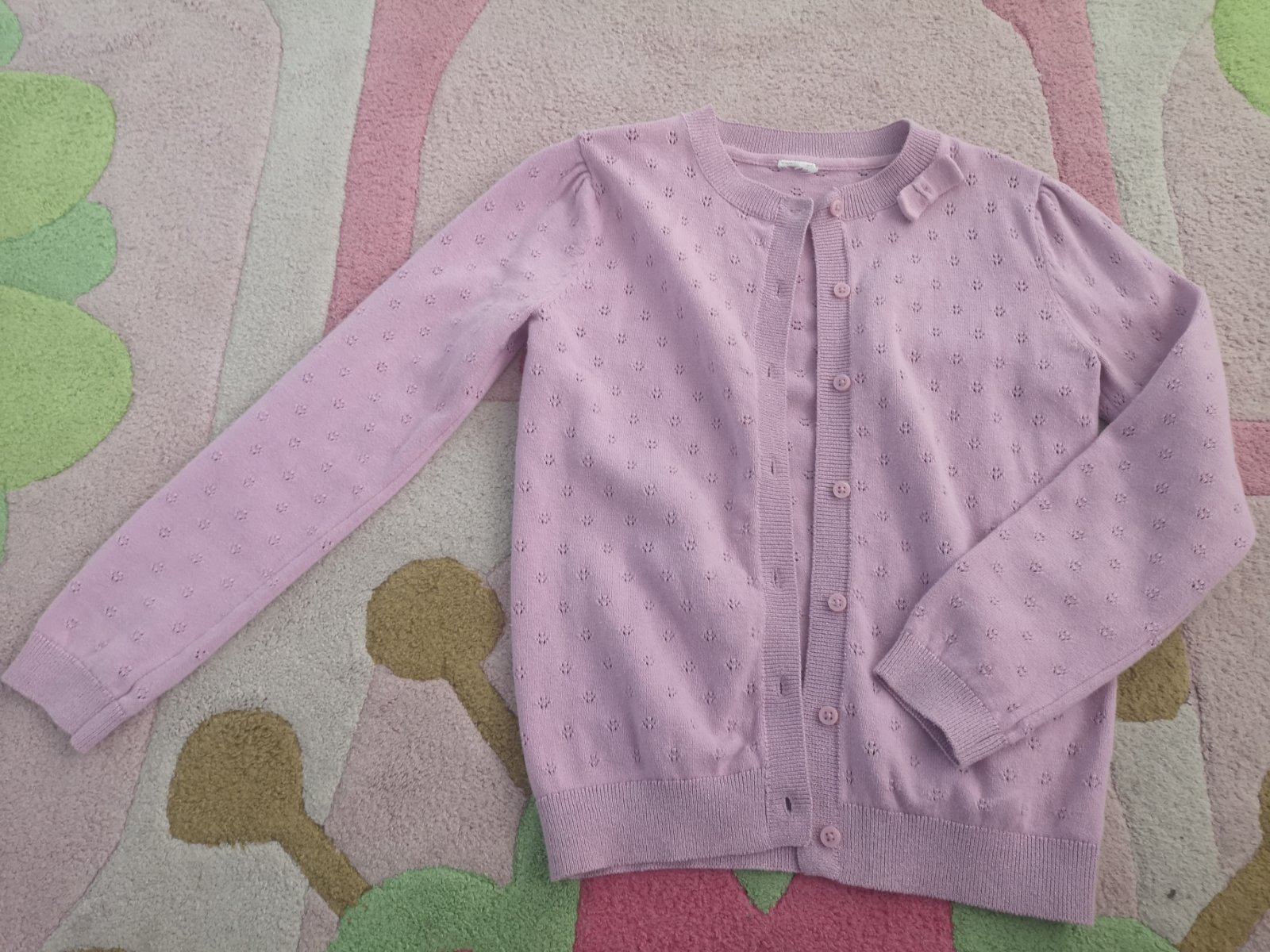 pěkný dívčí svetr v.128 s perličkami, barva jasnější pěknější,než na fotce,