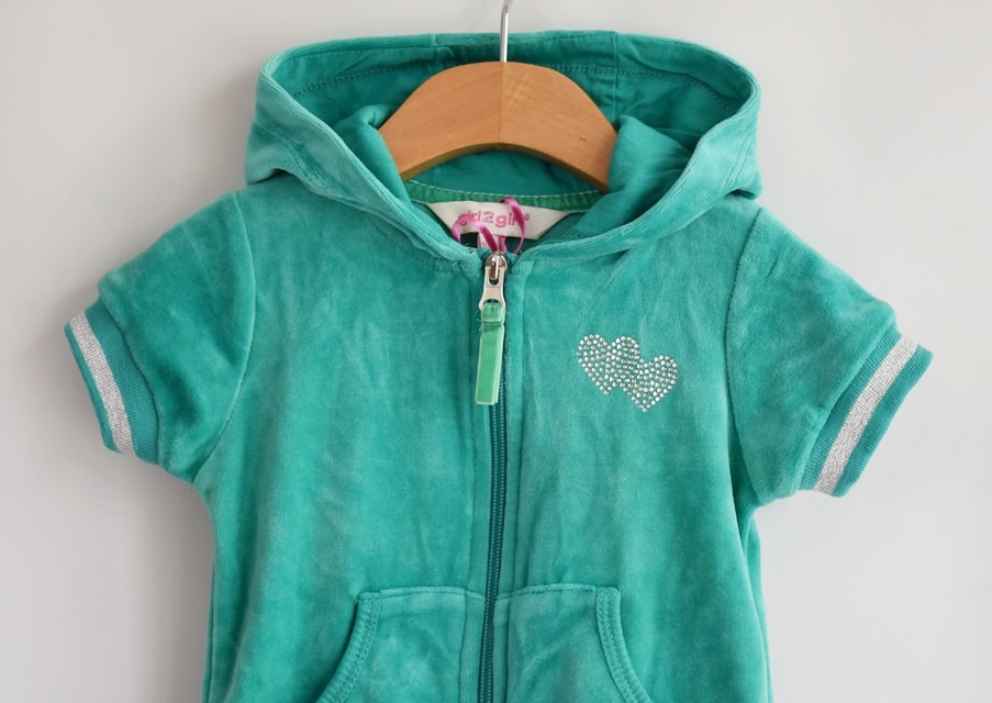 VELMI DOBRÝ STAV – oblečení nese známky nošení a praní, jako patrnější chloupek, mírně opraná barva, žmolík jen na lemech,