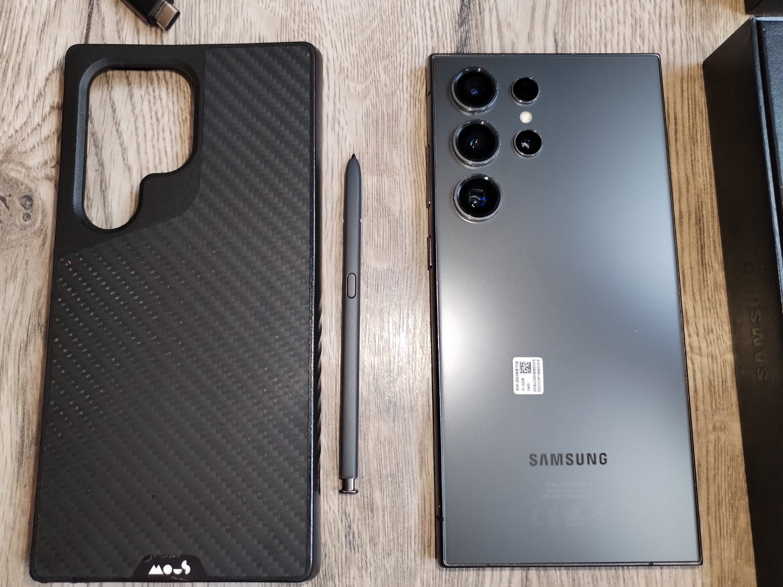 Mobilní telefon Samsung Galaxy S24 Ultra: 12 GB RAM, 512 GB úložiště, 8 jádrový procesor SNAPDRAGON, barva Titanium Black, displej 6,8" palců, zadní fotoaparáty 200 MPX, 50 MPX, 12 MPX, 10 MPX, optický zoom 10x a až 100x digitální, přední foto 12 MPX, kapacita baterie 5000 mAh, včetně originální tužky S-pen a originálního balení, tvrzené ochranné sklo, originální kryt MOUS, + ještě jeden ochranný kryt v top stavu, který není na fotografiích, ale bude přidán k telefonu.