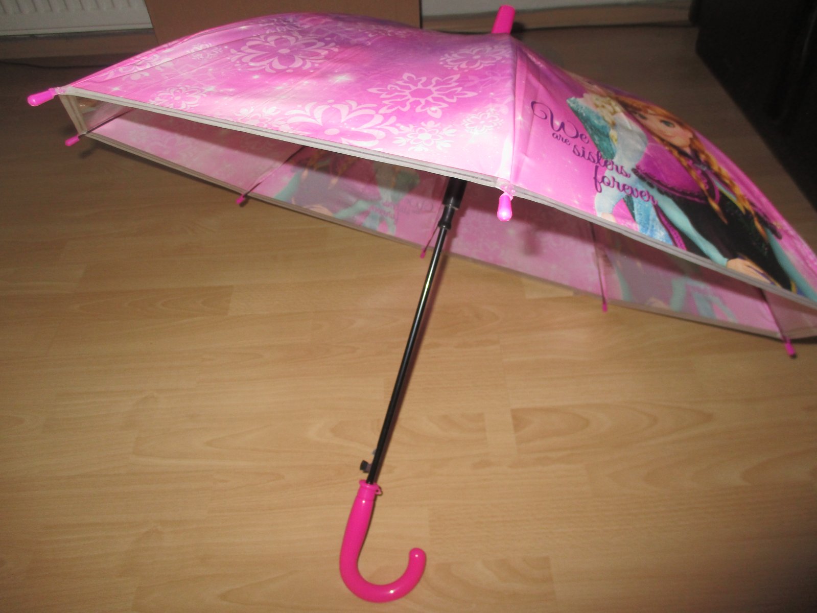 Igelitový silnější deštník z Ledového království, dl. 63 cm s rukojetí, vystřelovací, pěkný nošený stav
