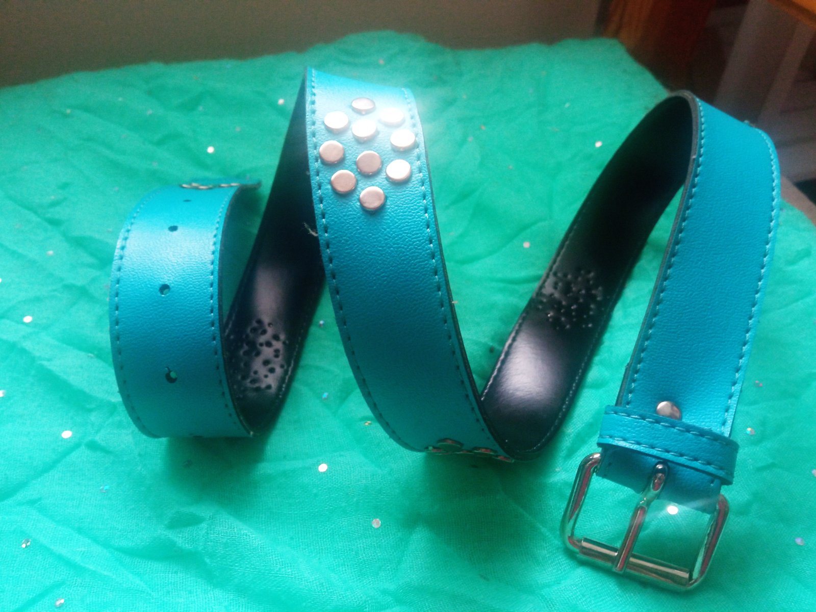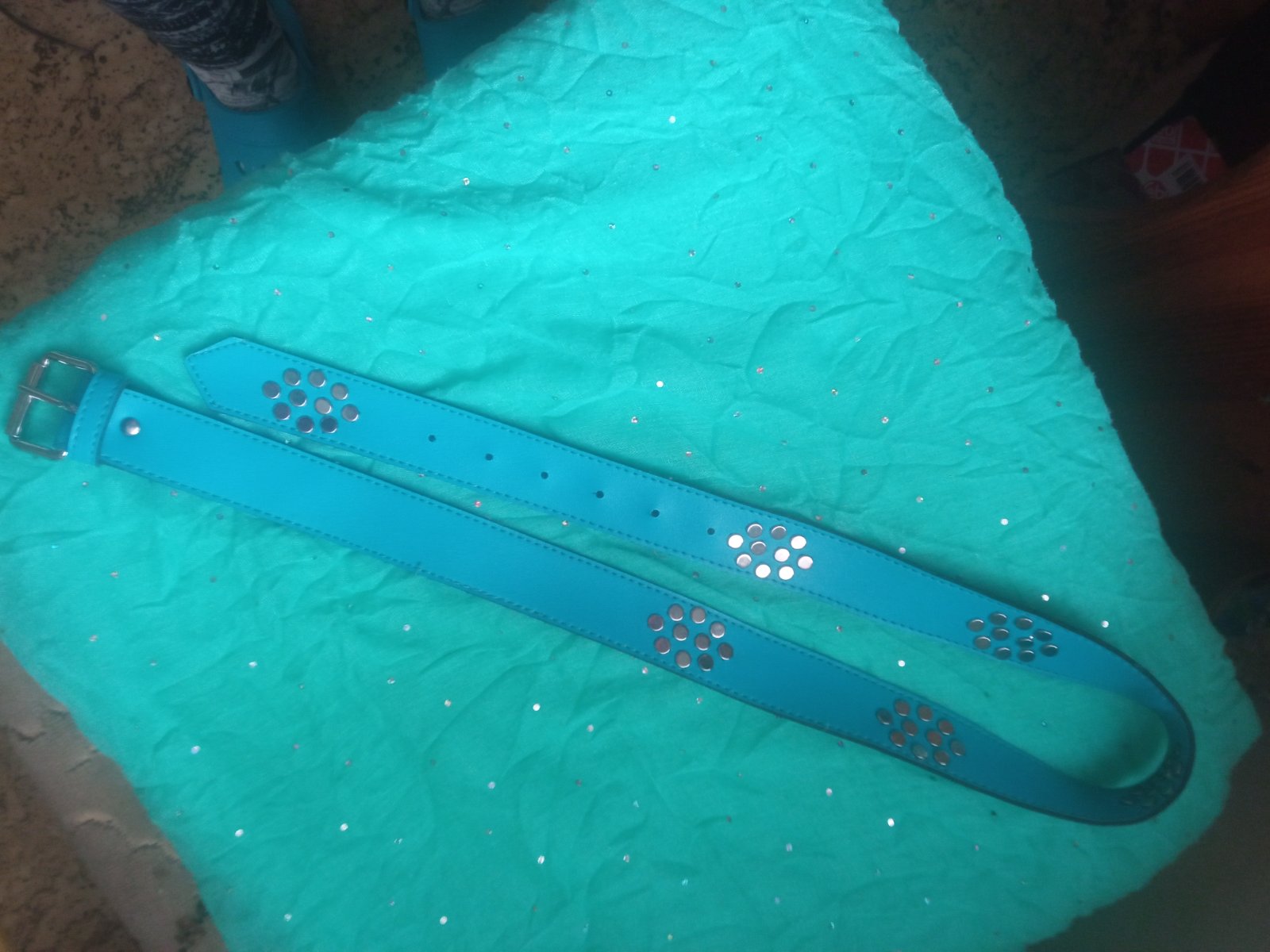Prodám pěkný pásek v tyrkysové barvě cena 30kč.