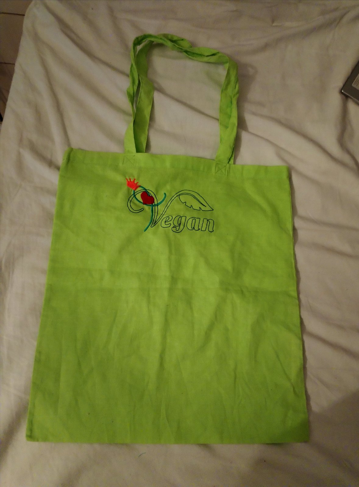 Bavlněná taška /tudíž ekologická/ v jasně až neon zelené s bezva textem. Výšivka, tudíž se neopere. Cca. 41*37cm, ucha jsou delší a jdou i přes rameno. V případě zájmu prosím ještě nakoukněte, třeba vás ještě něco zaujme a cenu za doručení využijete na 100%. Při odběru nad 1000,- je doručení gratis. Zásilkovna 90,-