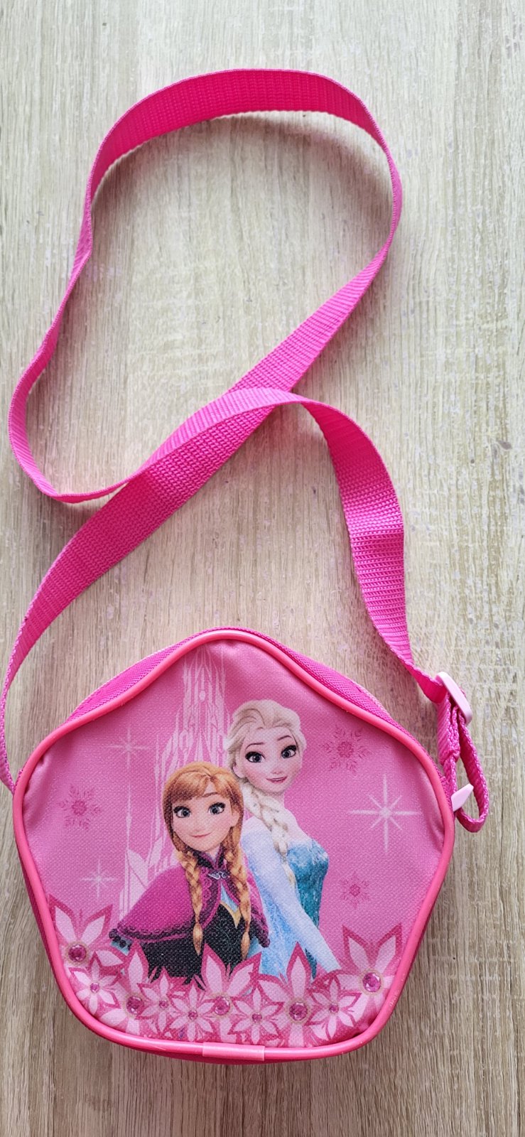 Prodám holčičí růžovou kabelku s oblíbeným motivem Elzy a Anny. Rozměry jsou na poslední fotce.