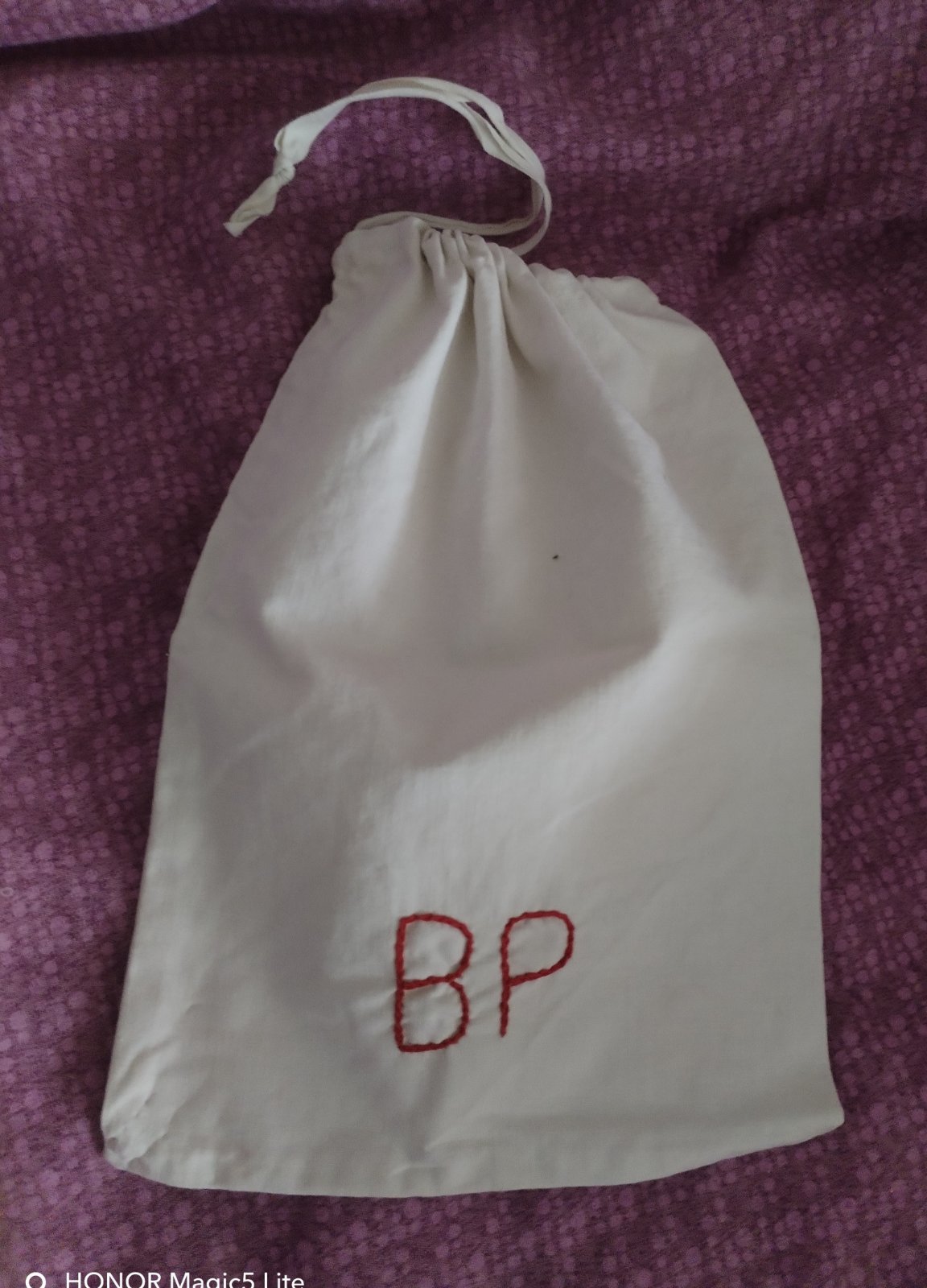 Pytlík s monogramem B P, cca. 26,5 * 19cm. Bavlněné plátno v ecru odstínu. Může se vám hodit na cokoli 😉 V případě zájmu nakoukněte , je tu toho mnohem víc a třeba vám v ceně jednoho poštovného 100,- padne ještě něco do oka a využijeme ho na 100% a při odběru nad 1000,- je doručení zcela GRÁTIS..!! Zásilkovna 80-