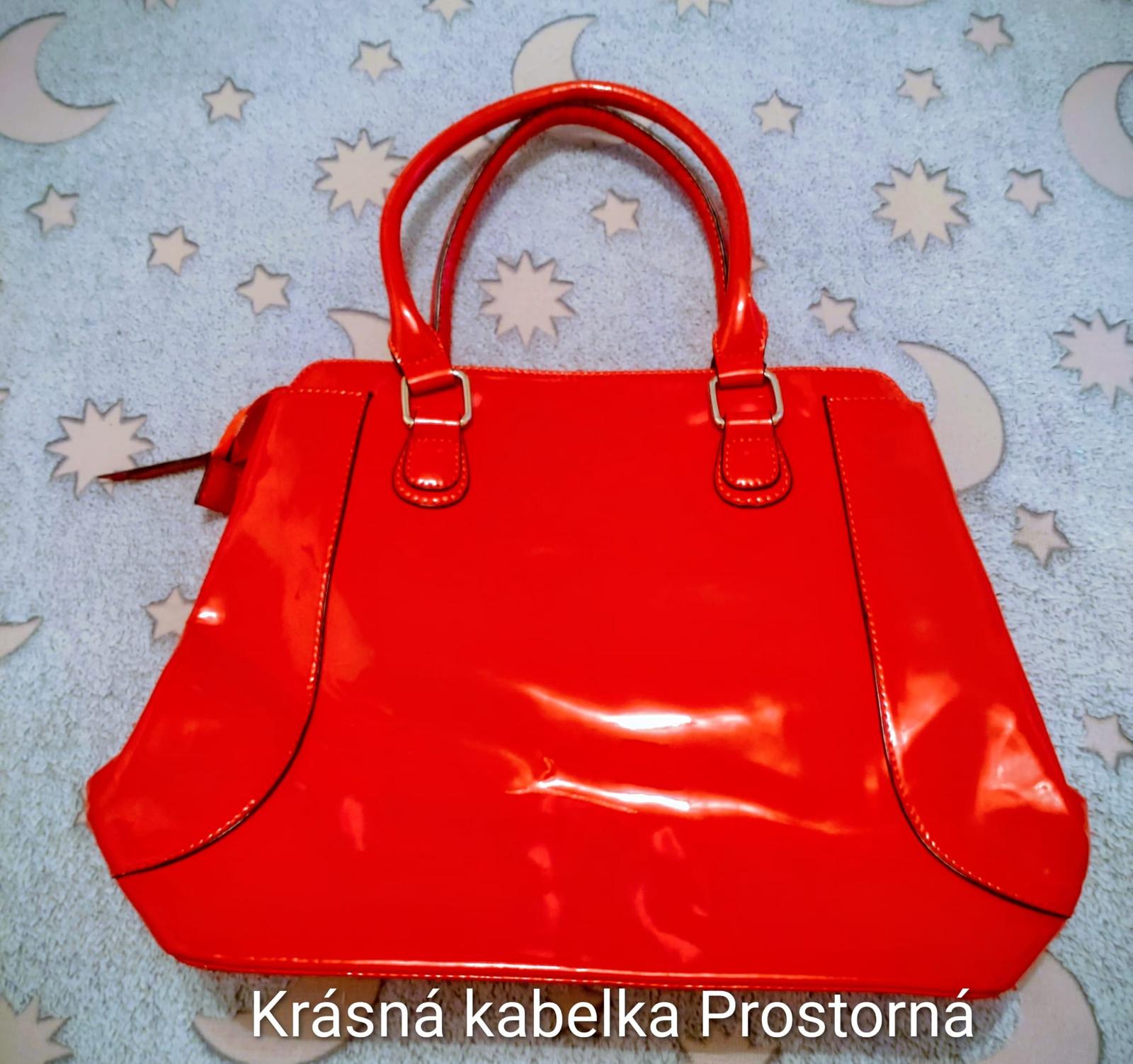 sytě červená kabelka má rozměry cca 34x24cm, má rozbitý patent na vnější kapse (viz. detailní foto), jinak má krásnou sytou barvu, spoustu kapsiček a hezkou vzorovanou podšívku druhá kabelka má svě...