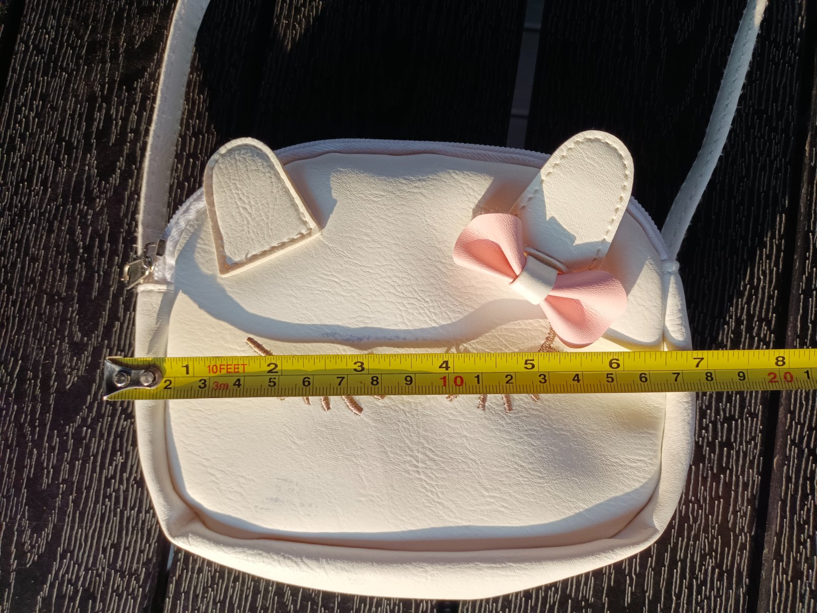 bílá s kočičkou – koženka, nošená minimálně, šmouhy viz foto,