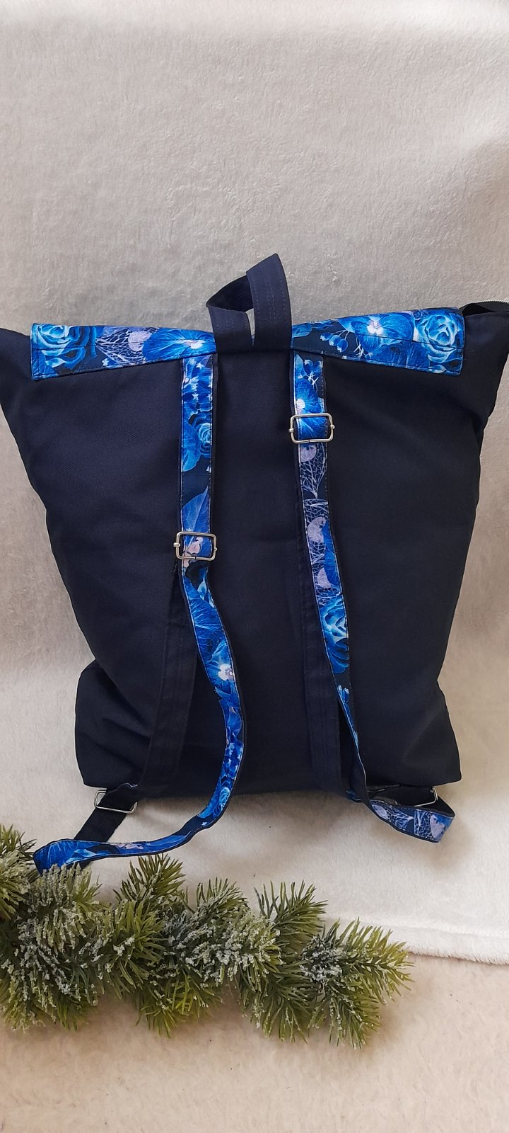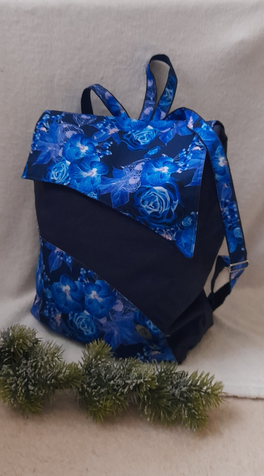 Městský prostorný batoh modré květy