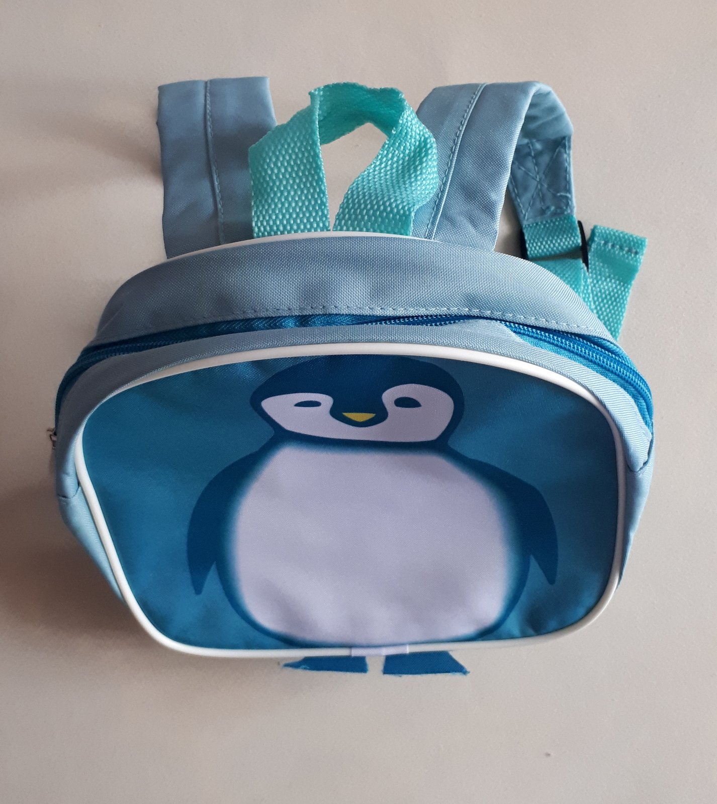 Prodám ve velice pěkném stavu batůžek s tučňákem, který visel ve školce s náhradním oblečením.