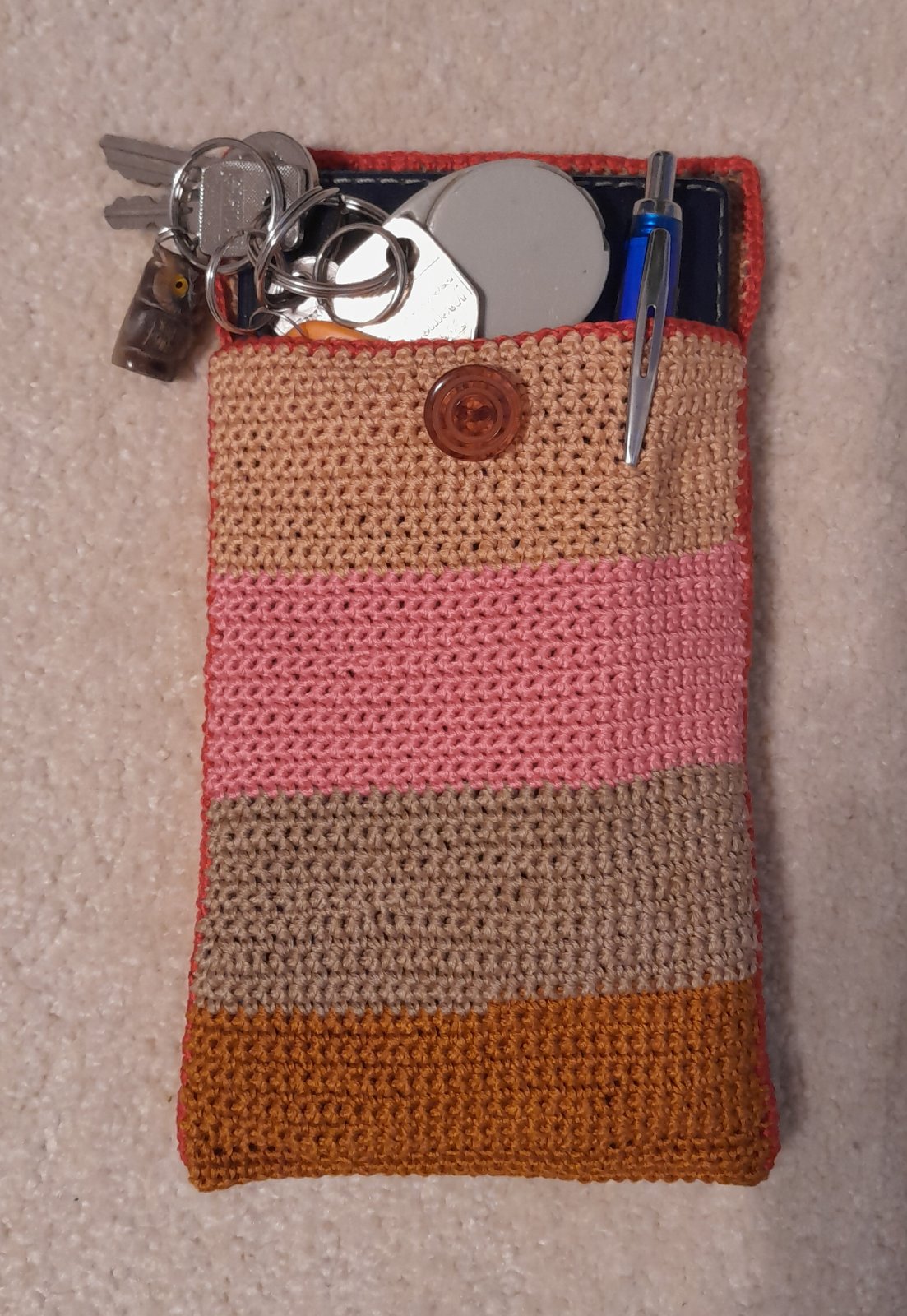 Prodám ručně háčkované pouzdro na mobil, brýle, tužky atp. Po přidání delšího bižuterního řetízku, nebo jiného popruhu přes rameno možno použít