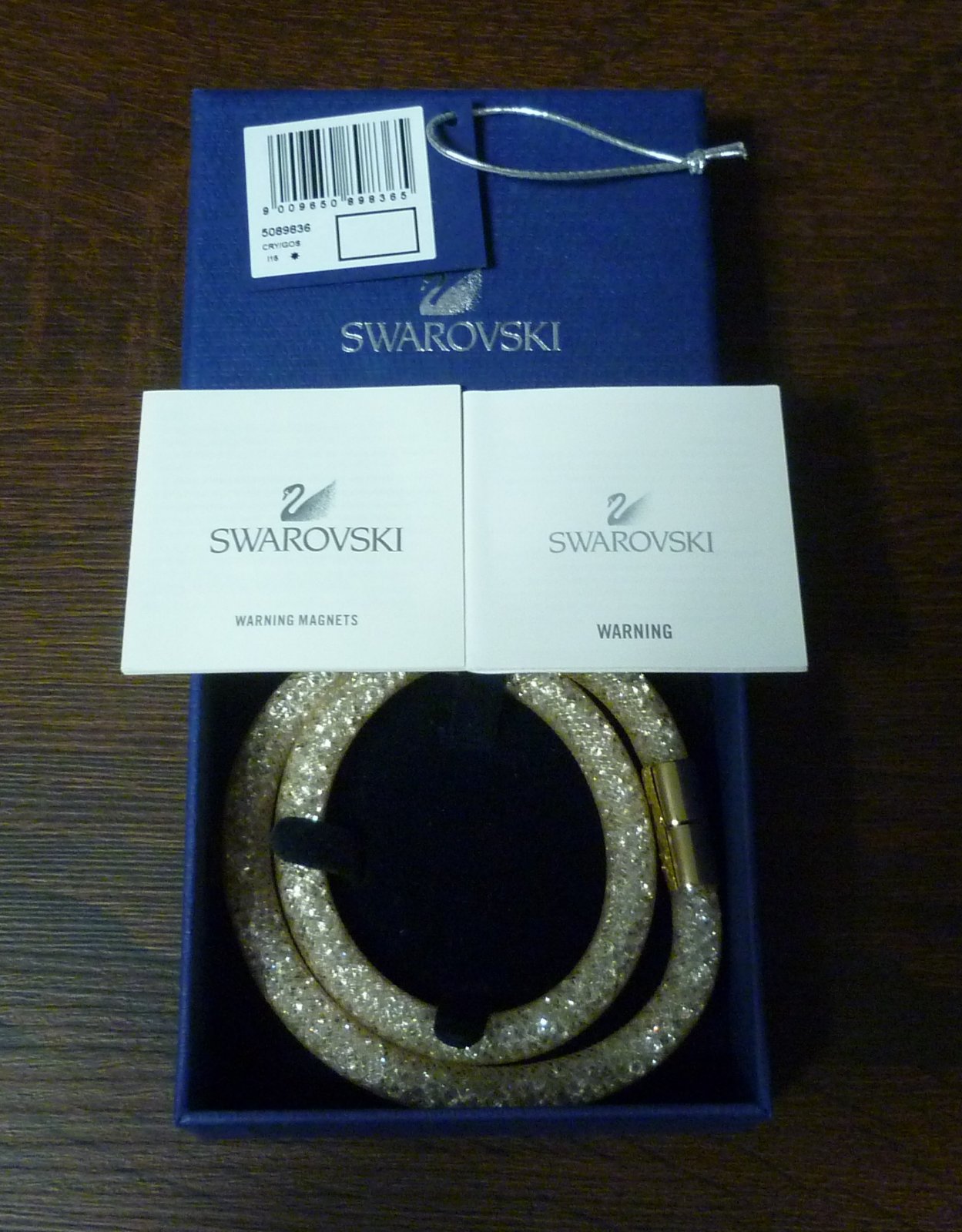 Prodám překrásný originální náramek s krystaly Swarovski, nový s visačkou, v originální krabičce. Barva: béžová - zlatá. Zapínání na magnet, krásně drží omotaný na zápěstí, lze nosit i na krku jako náhrdelník. Na zapínání logo. Cena: 880,-Kč + poštovné. Koukněte na moje další inzeráty, třeba si něco vyberete a ušetříte na poštovném. Tel.: 728 455 567