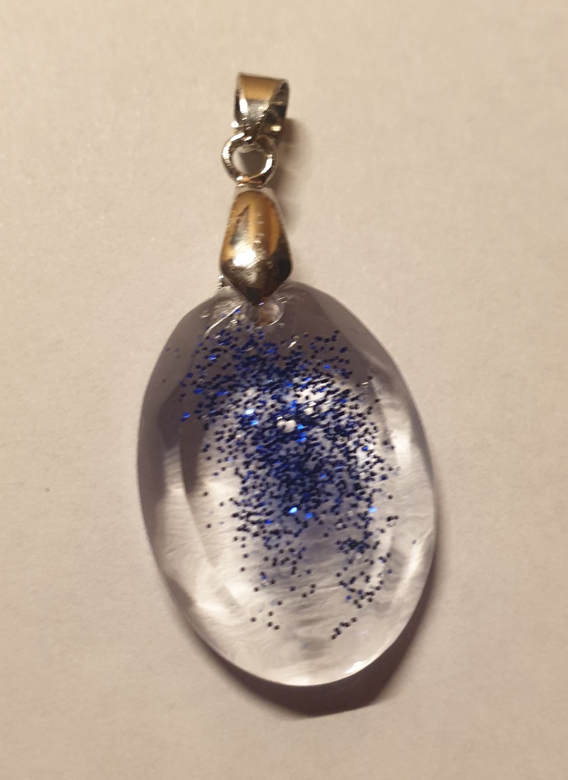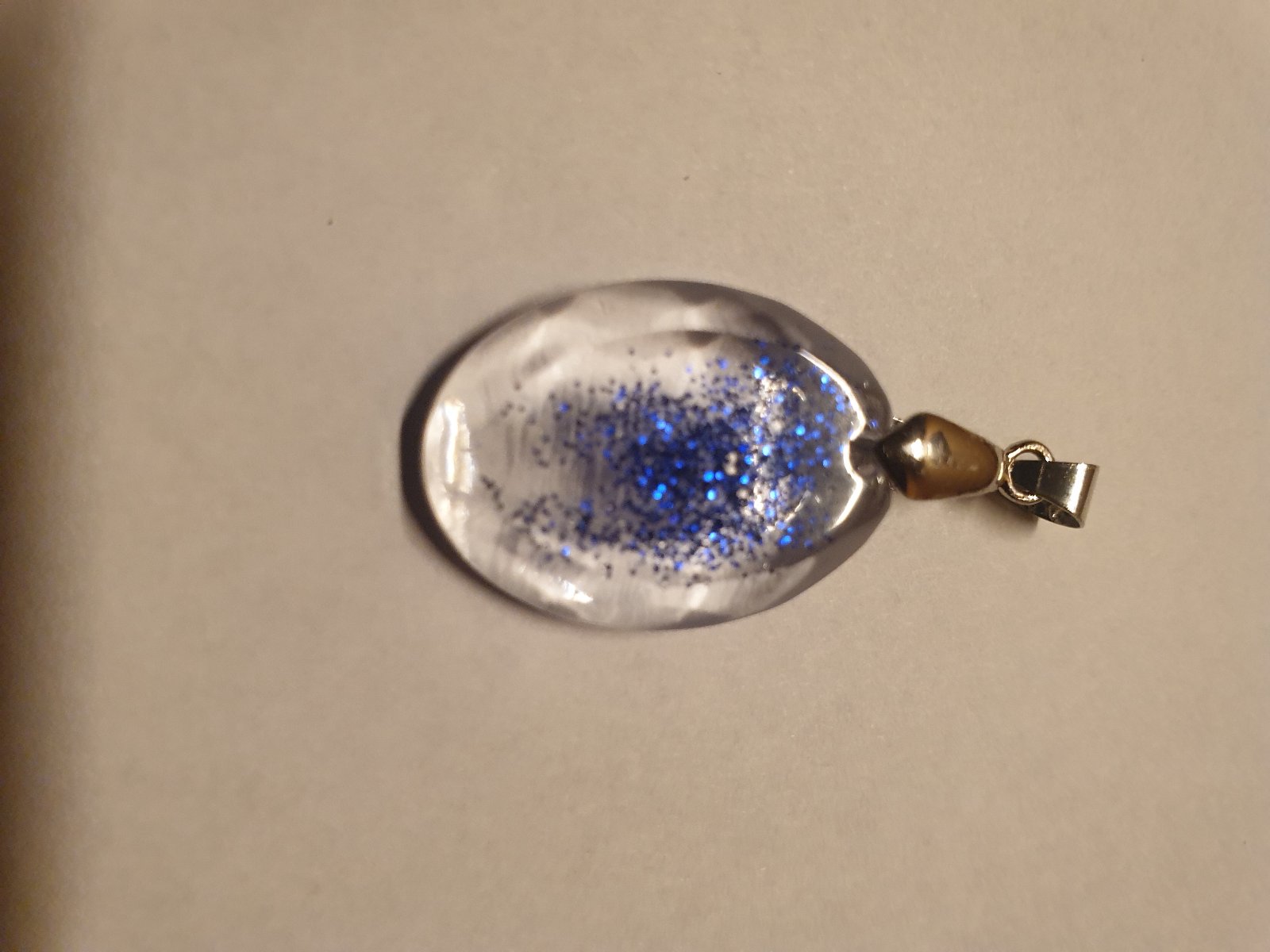 přívěsek s bižuterním úchytem. efektní design se třpytkami. velikost: šířka 2 cm, výška s úchytem 4 cm. ruční práce. každý kus je originál. kupujete vyobrazený kus.