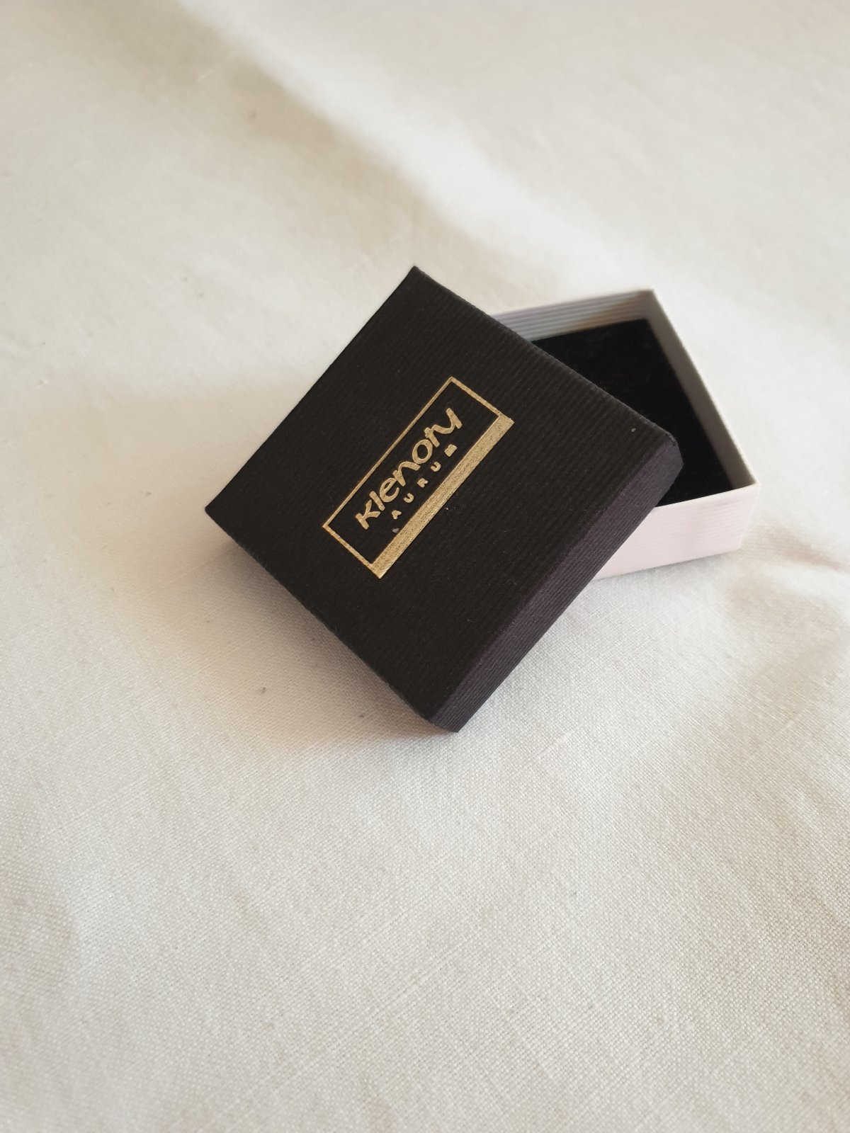 Papírová dárková krabička od klenoty Aurum s černou poduškou uvnitř. Rozměry: 60x60x20 mm. Vhodná pro sadu náušnice a řetízek.